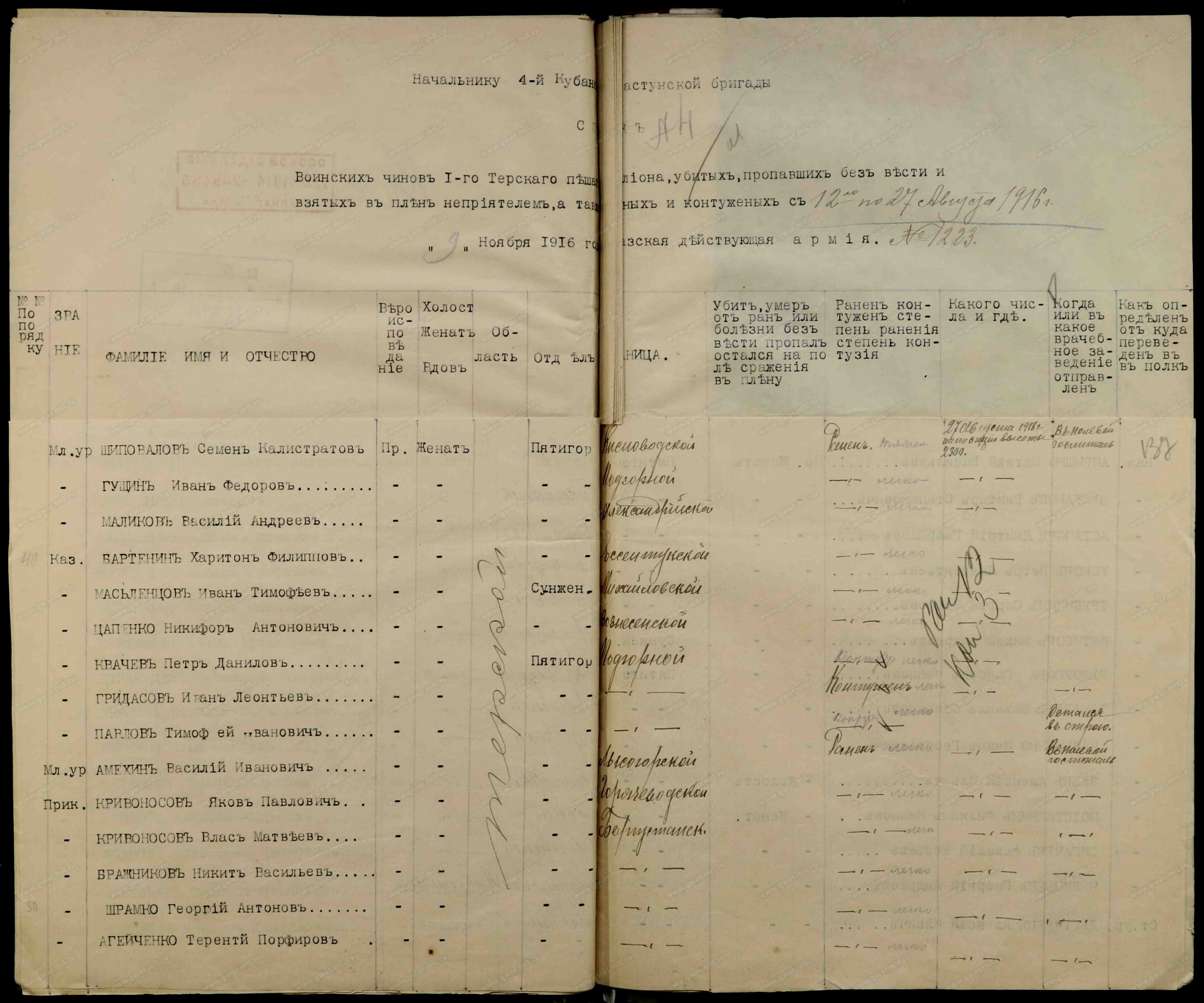 Приказъ по Терской области № 71. Отъ 10/15 января 1913 года.