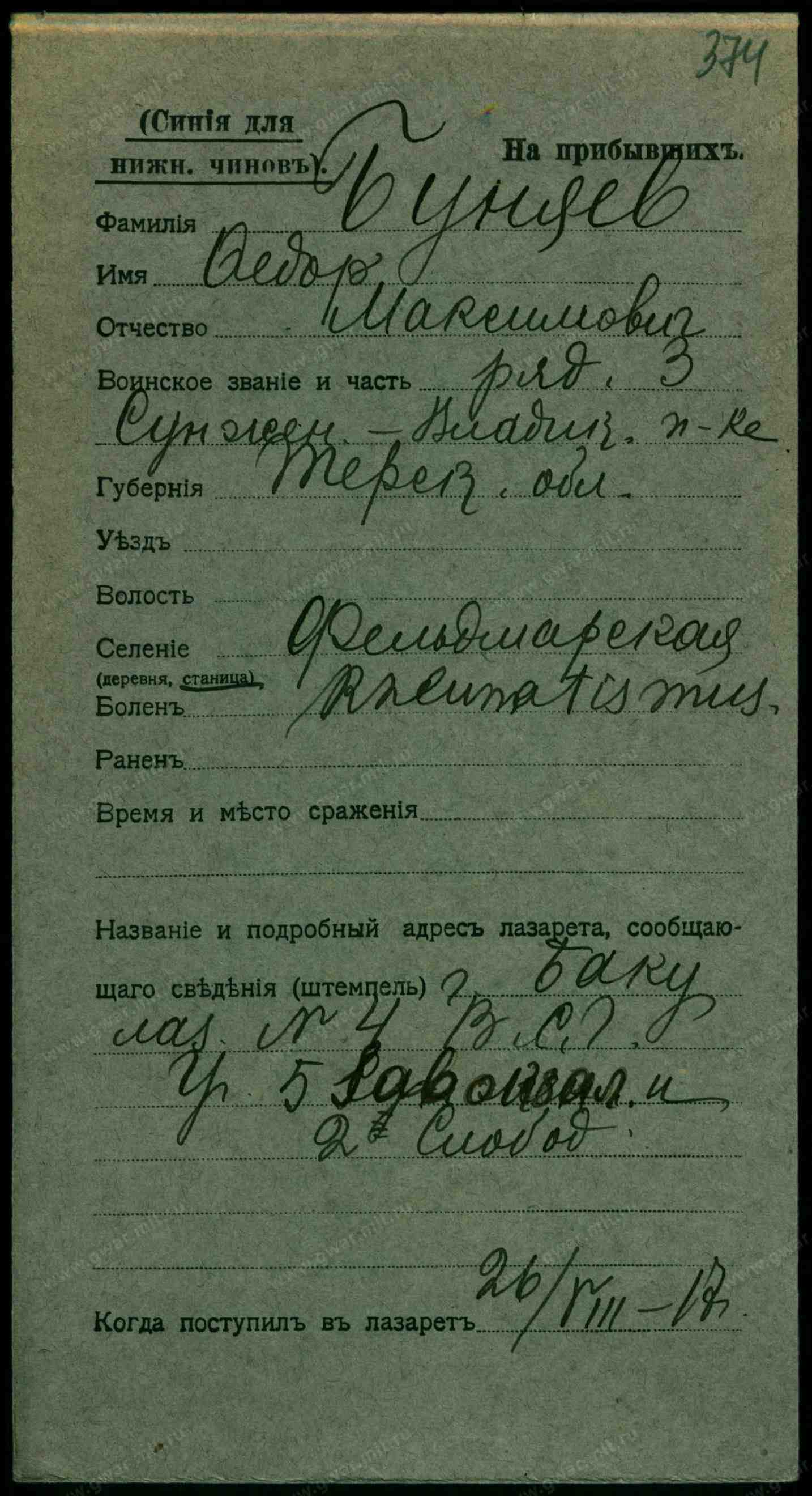 2. Ст. Фельдмаршальской. Буняевъ Максимъ. казакъ. 20 руб.