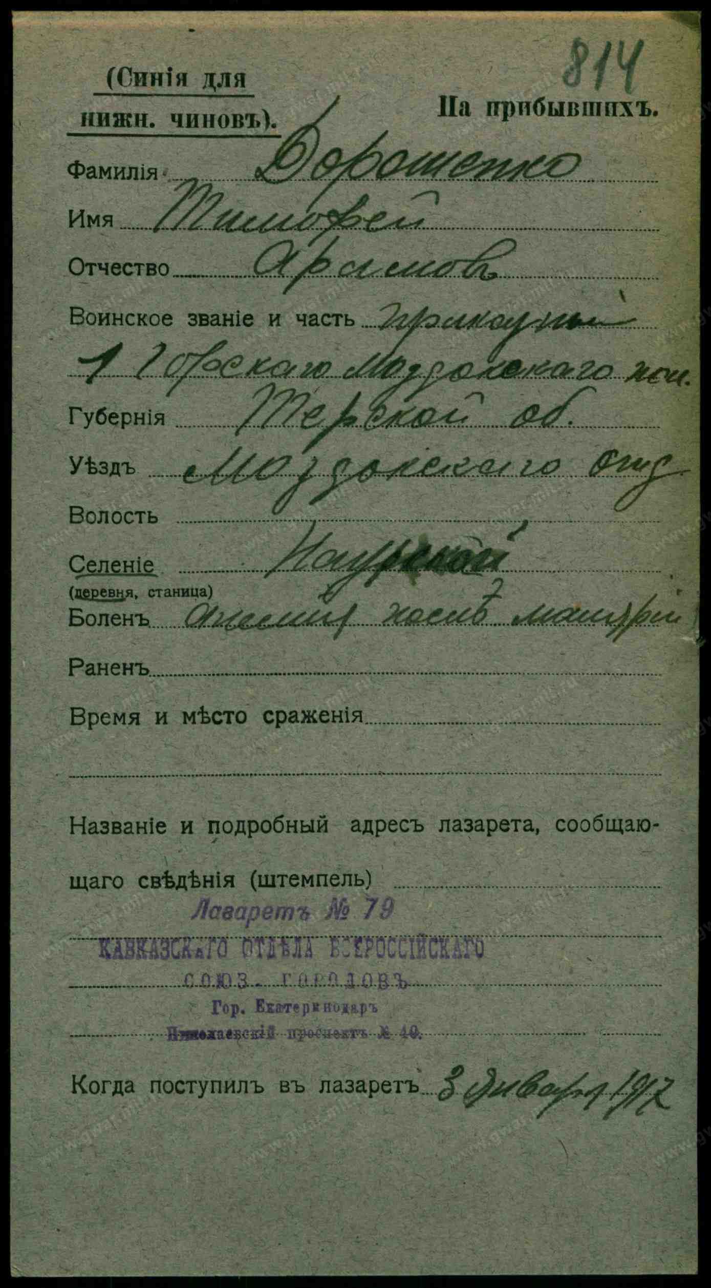 Ведомость Кавказского Линейного Казачьего Войска Наурской станицы Покровского Христорождественской церкви,