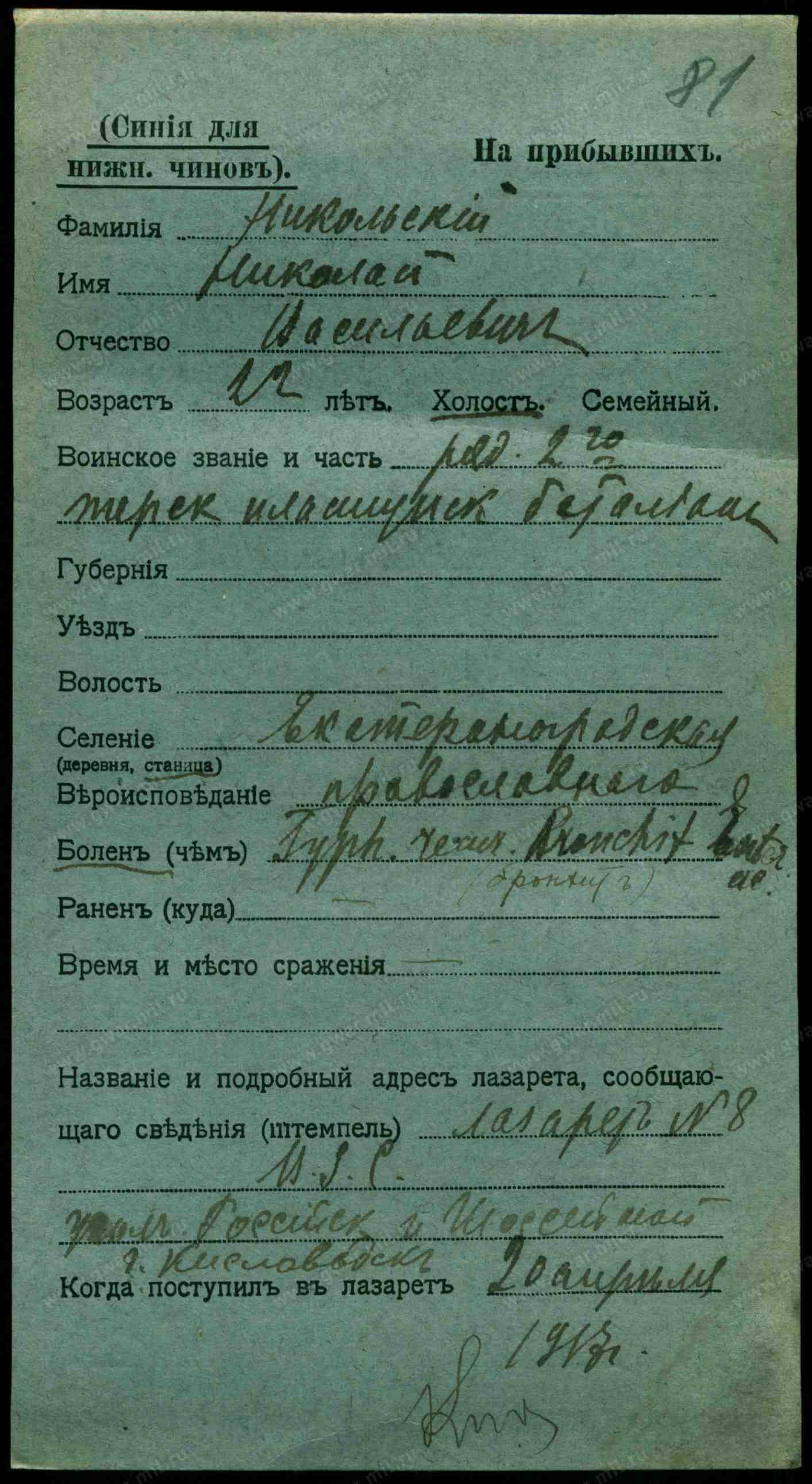 Жена: Никольская Екатерина Петровна ст. Екатериноградская.