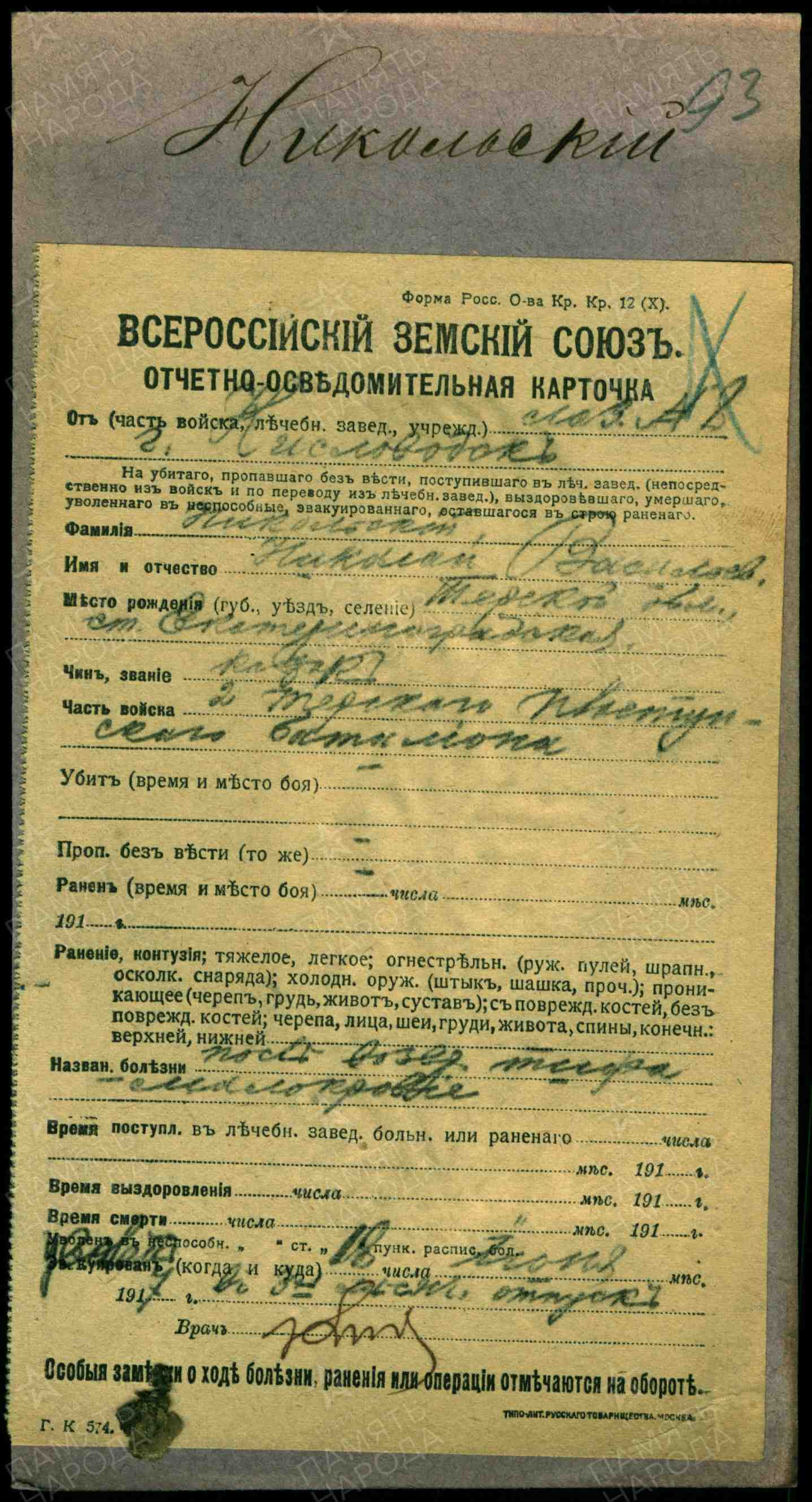 Фонд Картотека бюро учета потерь в Первой мировой войне (офицеров и солдат)