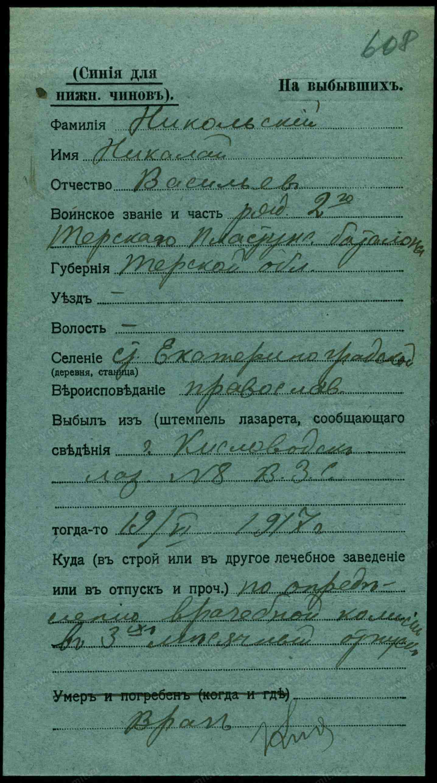 Место рождения Моздокский отдел, ст. Екатериноградская