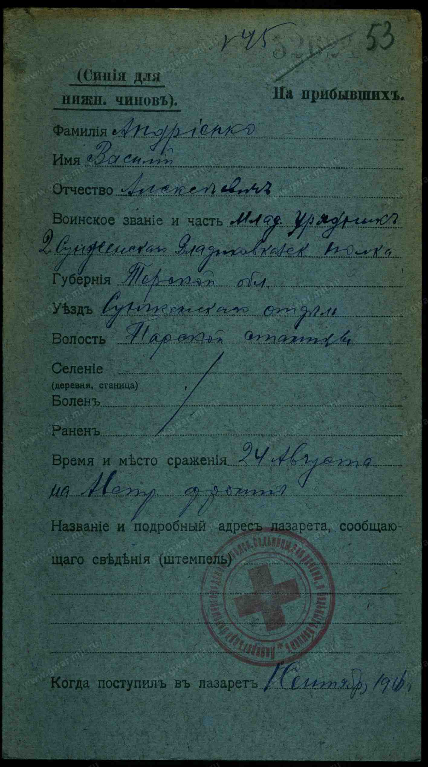 Фонд: Картотека бюро учета потерь в Первой мировой войне (офицеров и солдат).