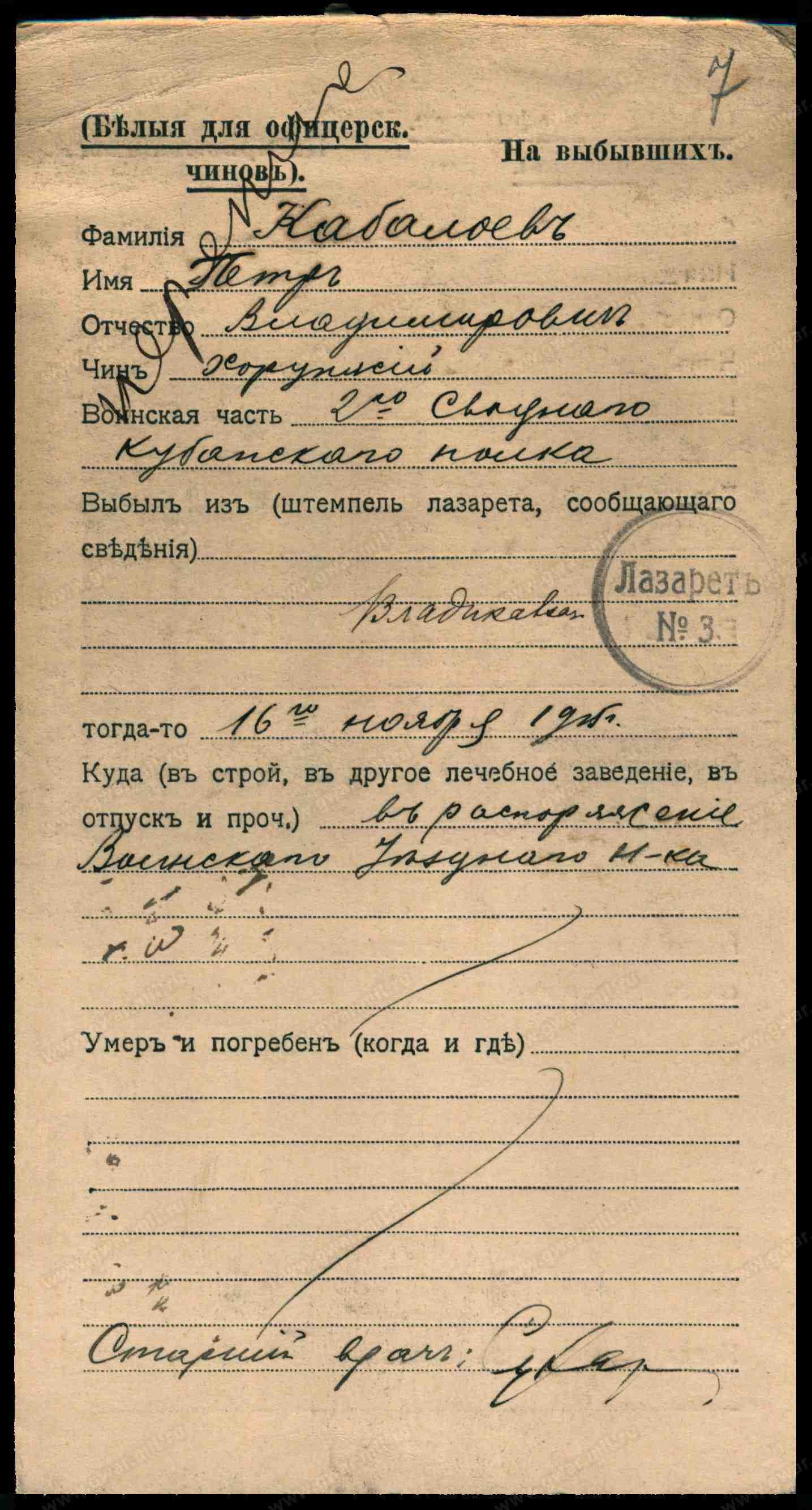 Тип документа Карточка на выбывших (нижние чины)