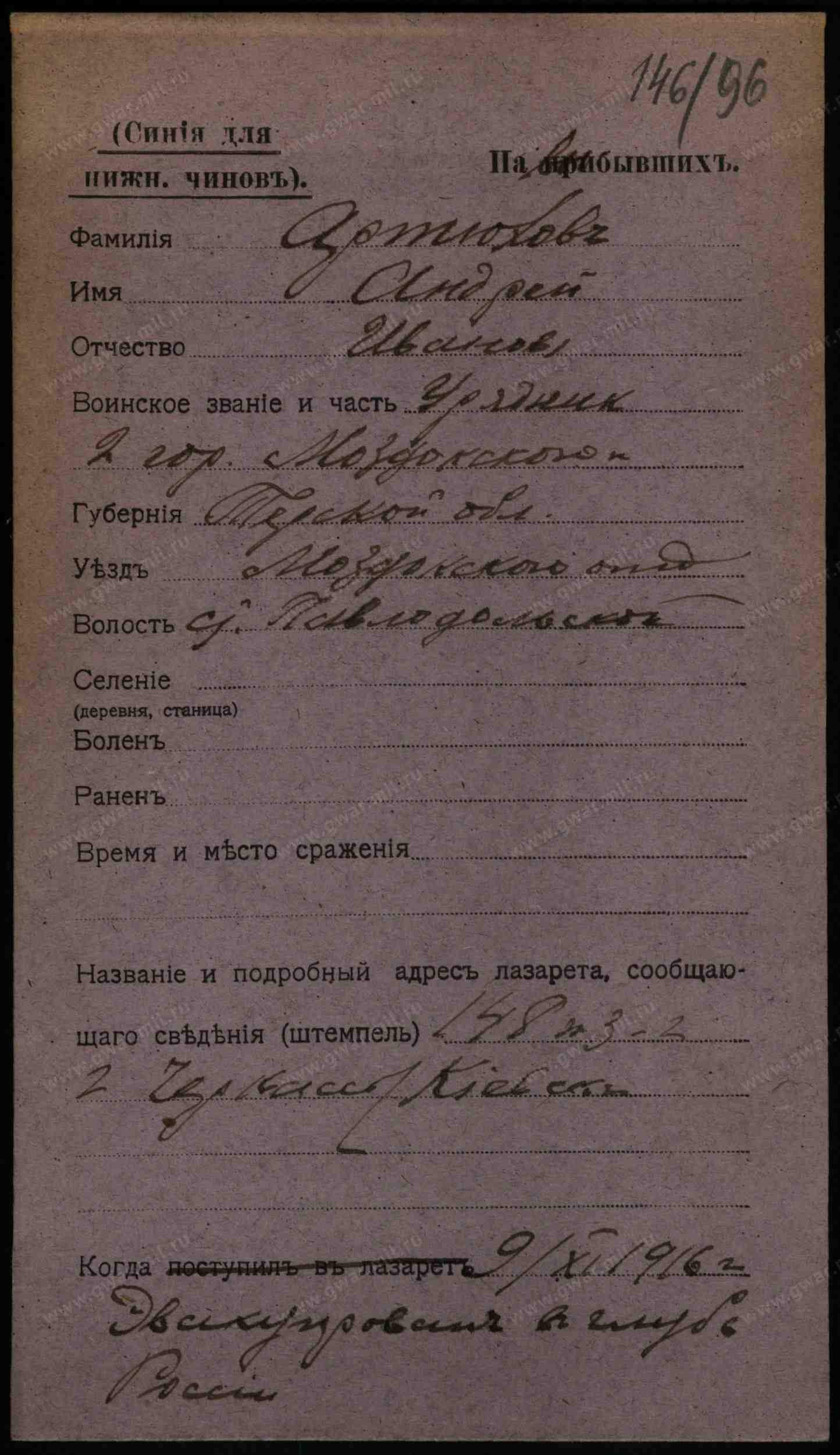 Майор __.__.1917 Северо-Осетинская АССР, Моздокский р-н, ст. Павлодольская. Сводная картотека