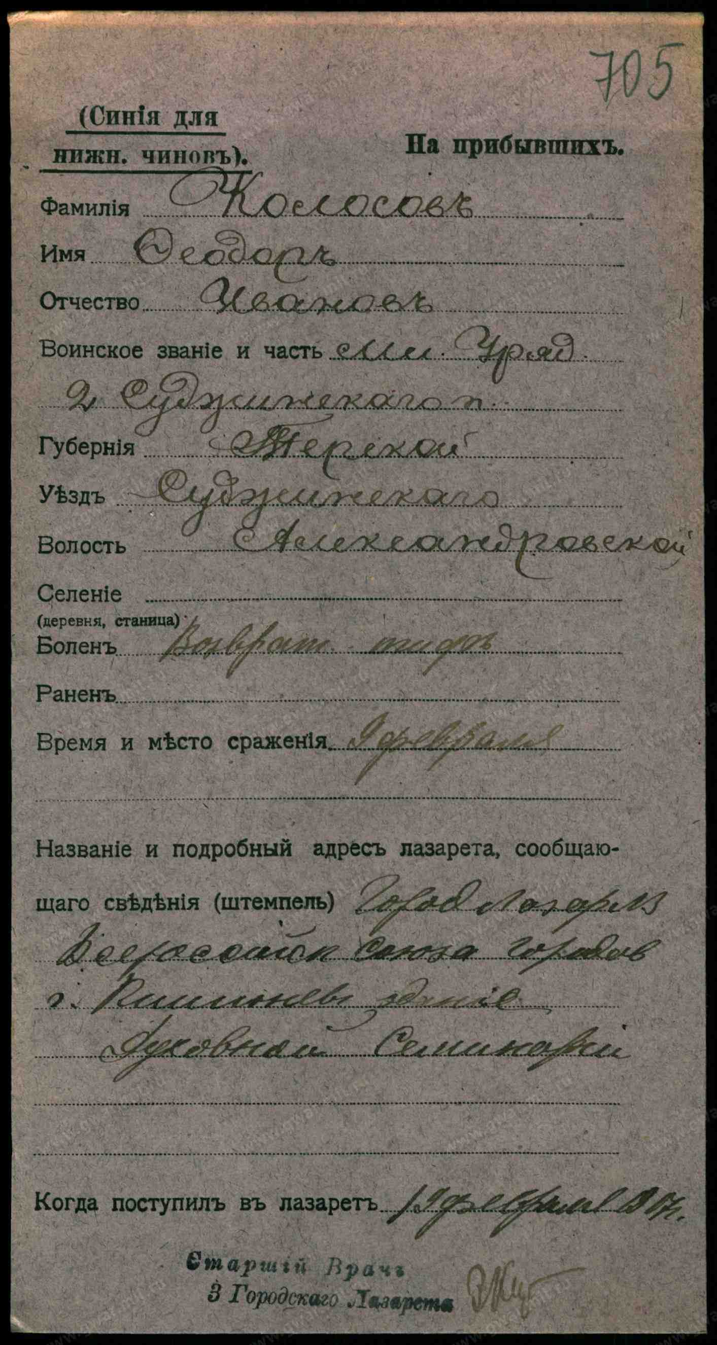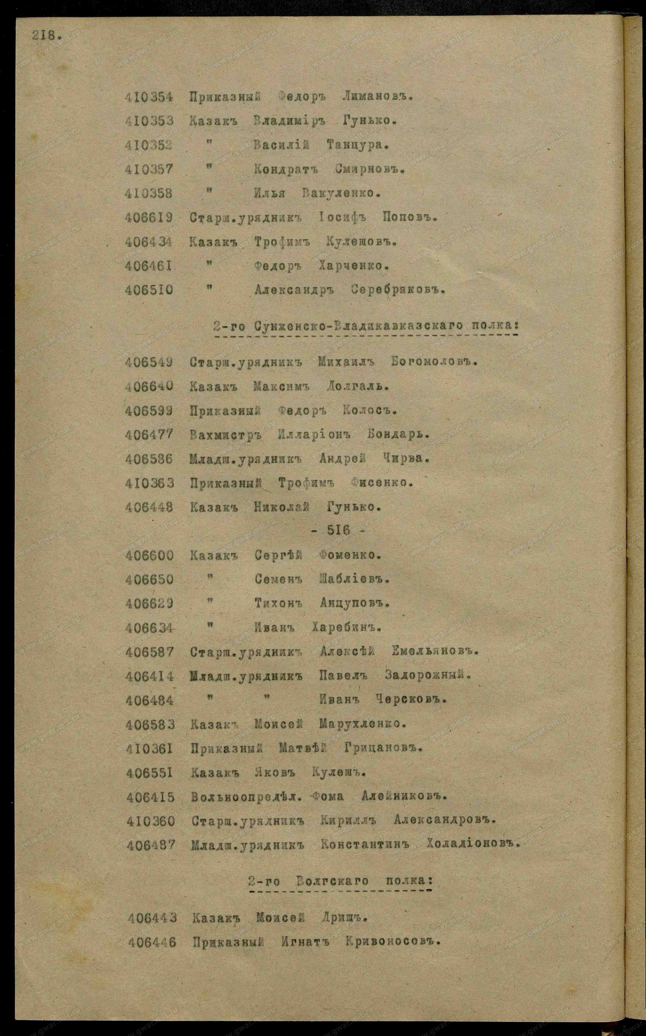 Состоящим в действующей армии и сражающимся на полях Галичины за славу и честь Святой Руси казакам ст. Александровской: 1 сотни 2 Сунженско-Владикавказского полка: хорунжему Андрею Похмельному, хорунжему Василию Зеркалею; старшим урядникам Георгиевским кавалерам: Михаилу Волкову, Андрею Ткаченко, Павлу Пелиху, Матвею Лакоченко, Алексею Воронину, Георгиевским кавалерам: приказному Феодору Скляру и казакам: Георгию Кацупию, Алексею Самойленко, Василию Казилову, Феодору Колосу, Михаилу Сотникову, Ивану Гаврилею, Николаю Казупию, Михаилу Заике, Ивану Савельеву, Феодору Чухвану, Ивану Трояну — Георгиевскому кавалеру, Константину Сердюкову, Стефану Ларину, Димитрию Пестичу, Ивану Ефремову, Петру Бобырю, Тимофею Казупию, Михаилу Пестичу и Ивану Ткаченко за сооружение в свою приходскую церковь иконы Божией Матери, наименовав ее „Августовской", на каковой в верхней части её, в кресте, изображена Богоматерь, держащая шуйцею Богомладенца и десницею указывающая на запад, внизу коленопреклоненные молящиеся воины, в 481 р. в память великой второй отечественной войны 1914—1915 г.г.