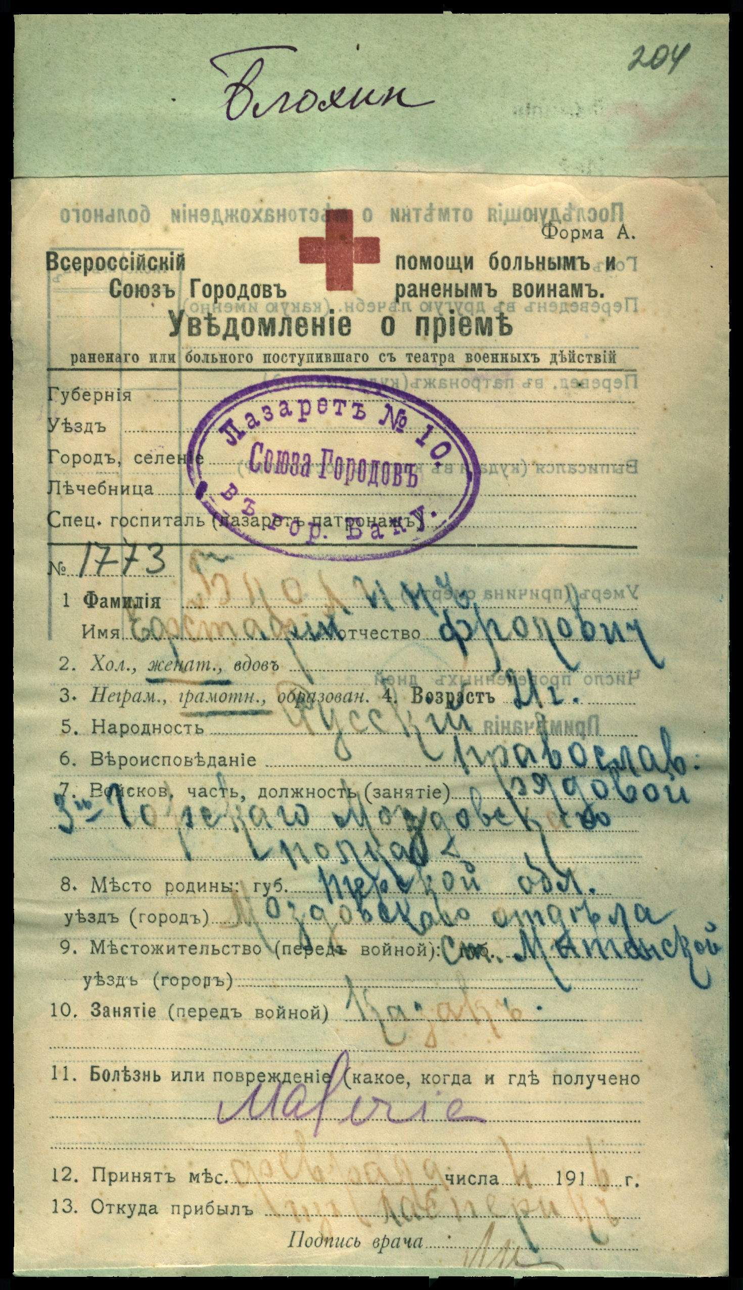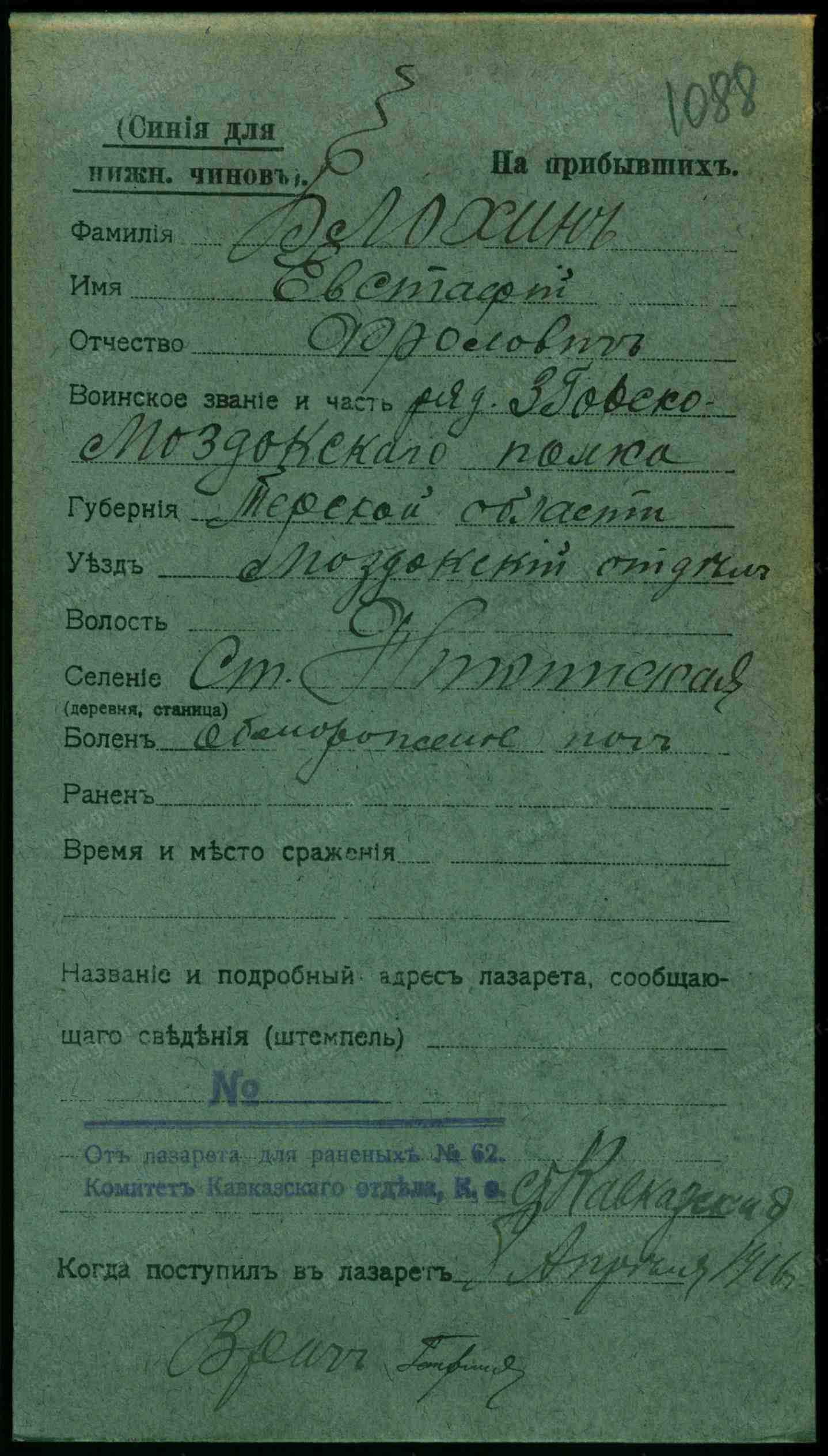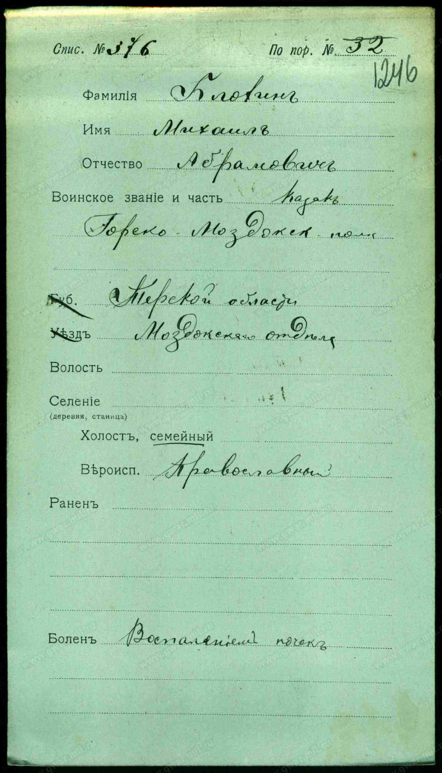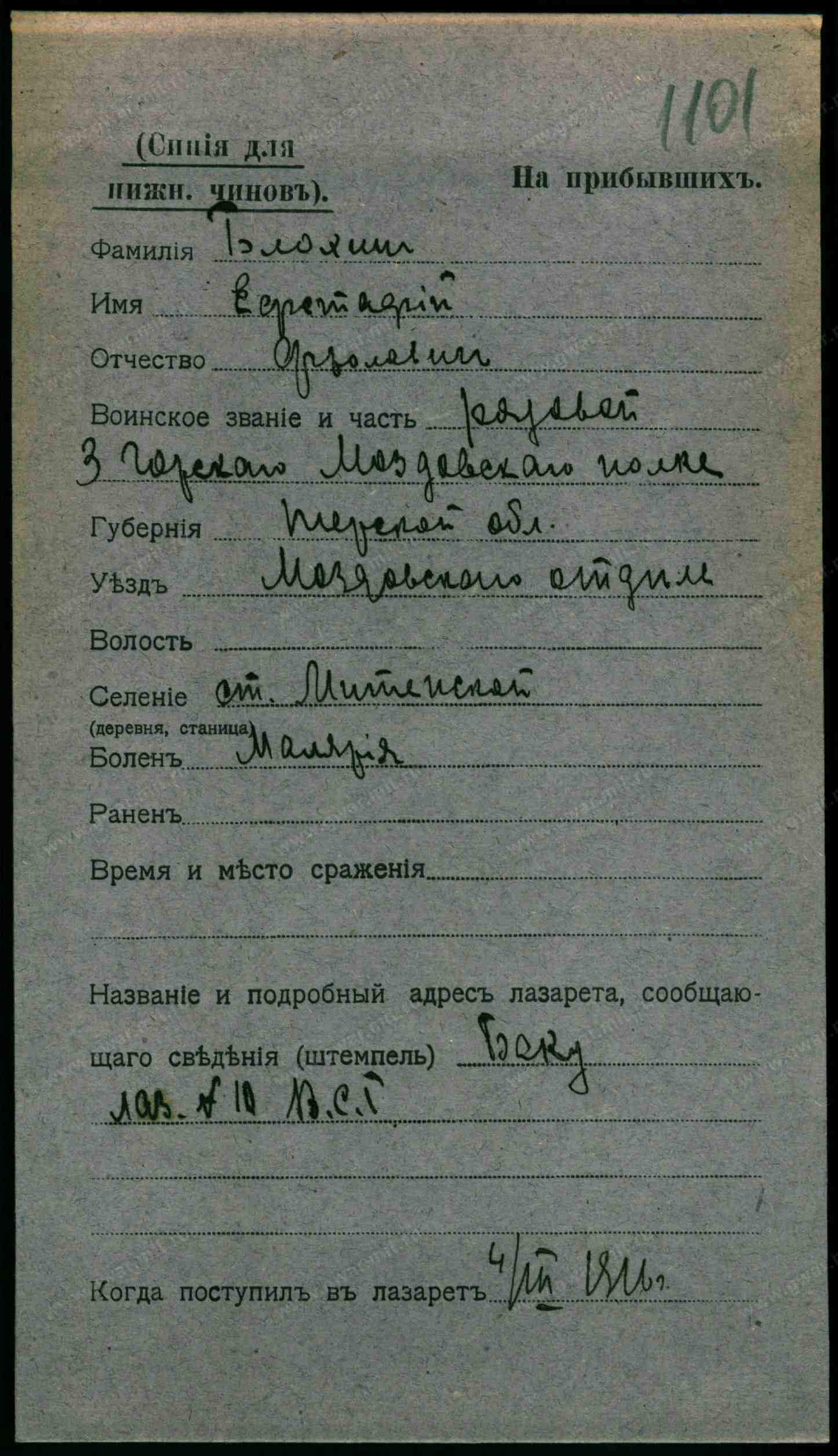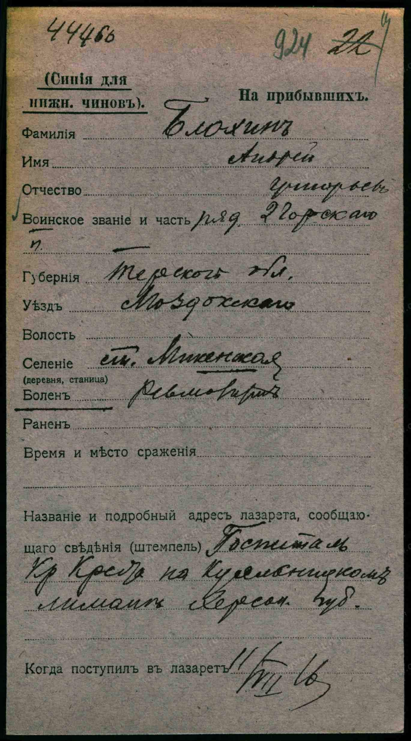 Красноармеец, __.__.1910 Грозненская обл., Наурский р-н, ст. Микенская