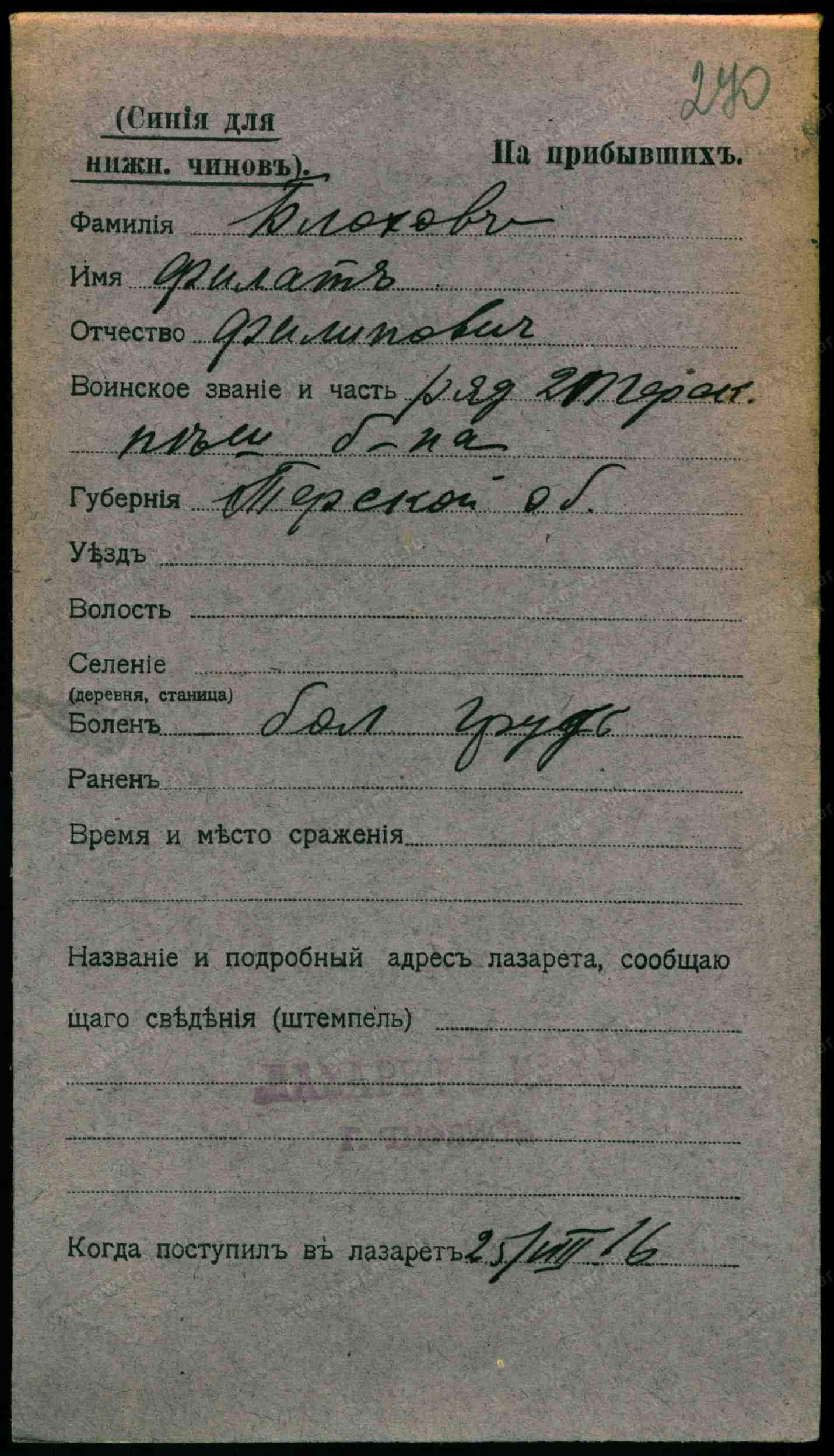 Жена: Блохина Агафья Ивановна ст. Гудермес