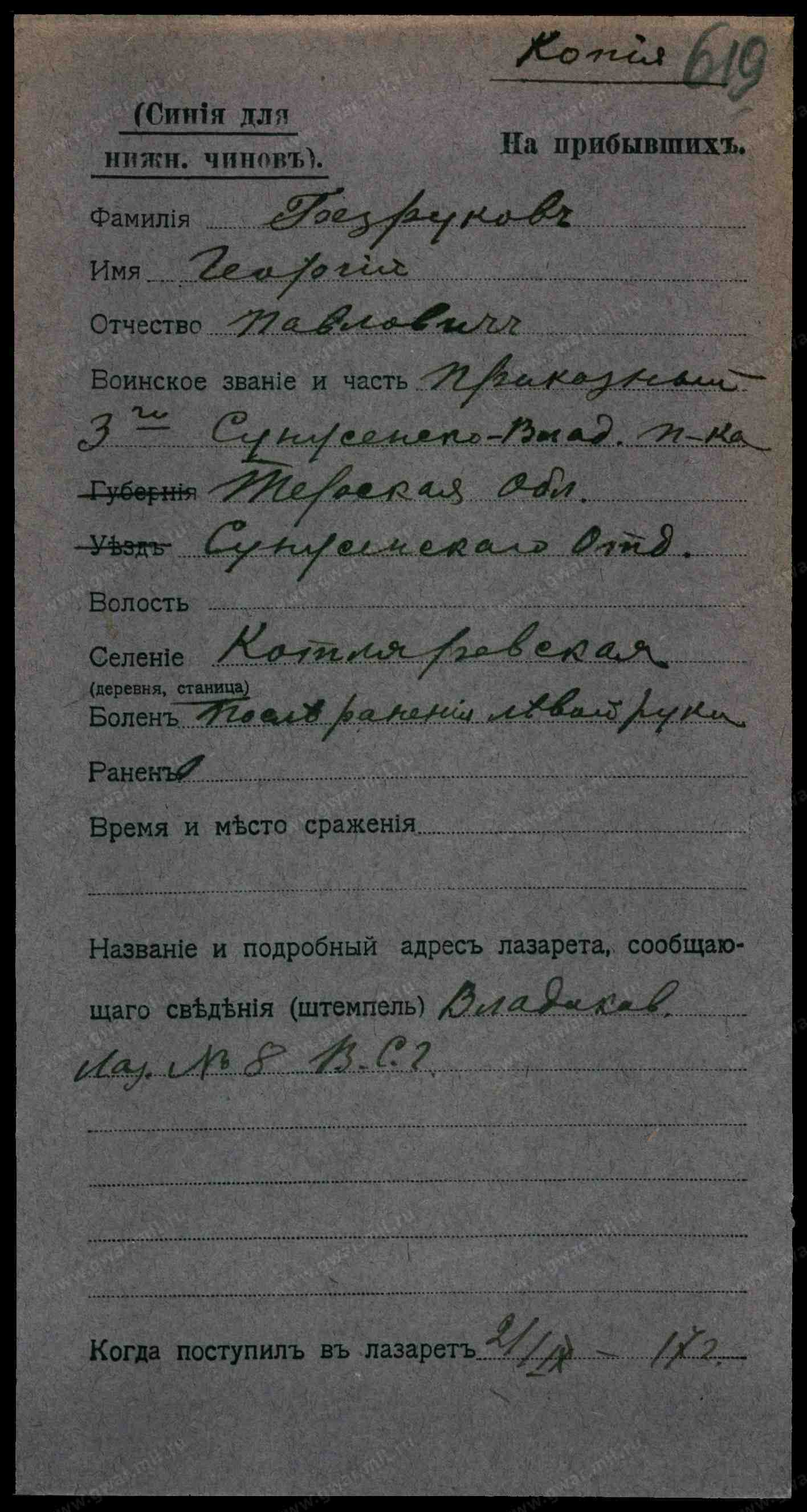 № Не указан. Безруков Дмитрий Павлович (1878) Приказный.