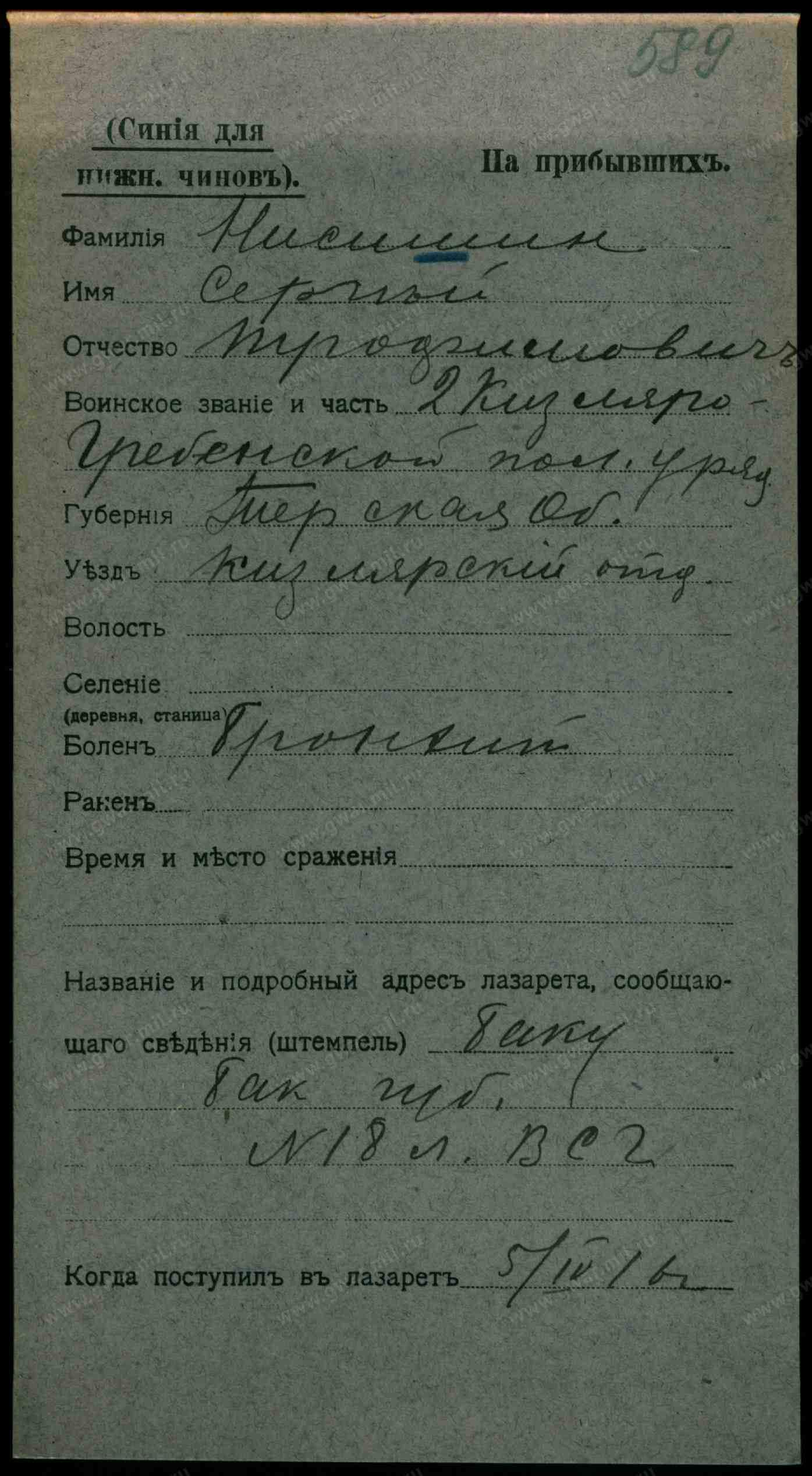 7. Никишин Сергей Трофимов, работник, 17 лет, холост, казак, родился здесь, правосл., родной язык русский, неграмотный, работник - земледелец.