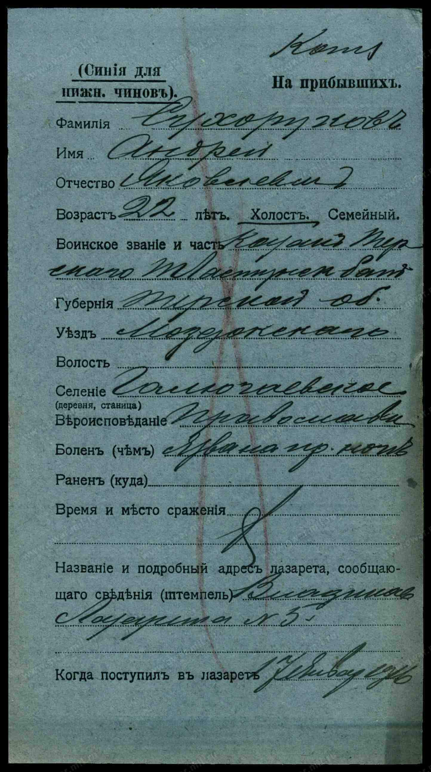Ст. лейтенант медслужбы __.__.1909 Ставропольский край, ст. Галюгаевская. Сводная картотека