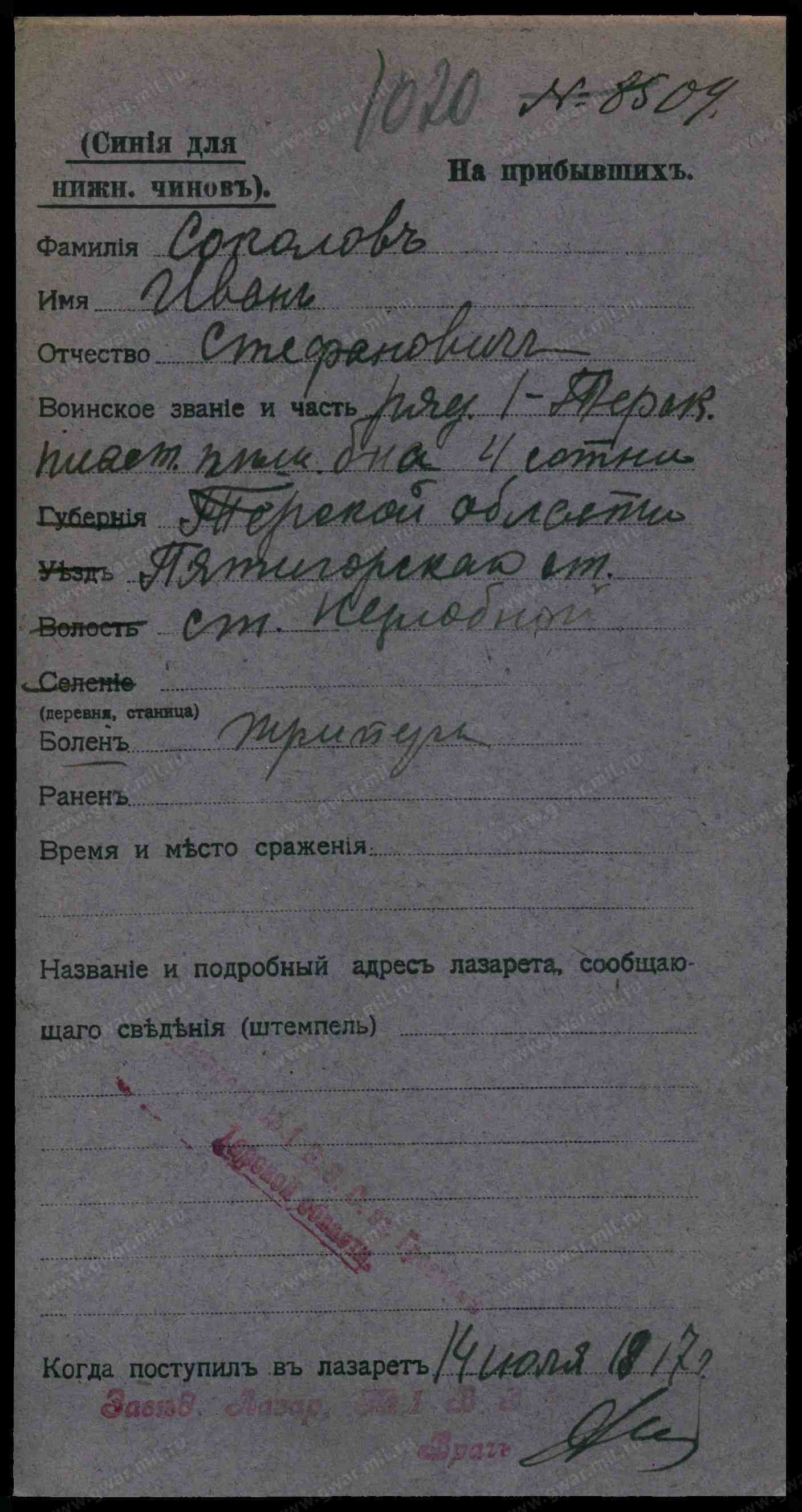 № П/п 59. № ГМ. 532763 Павелъ Степановъ Соколовъ- казакъ.