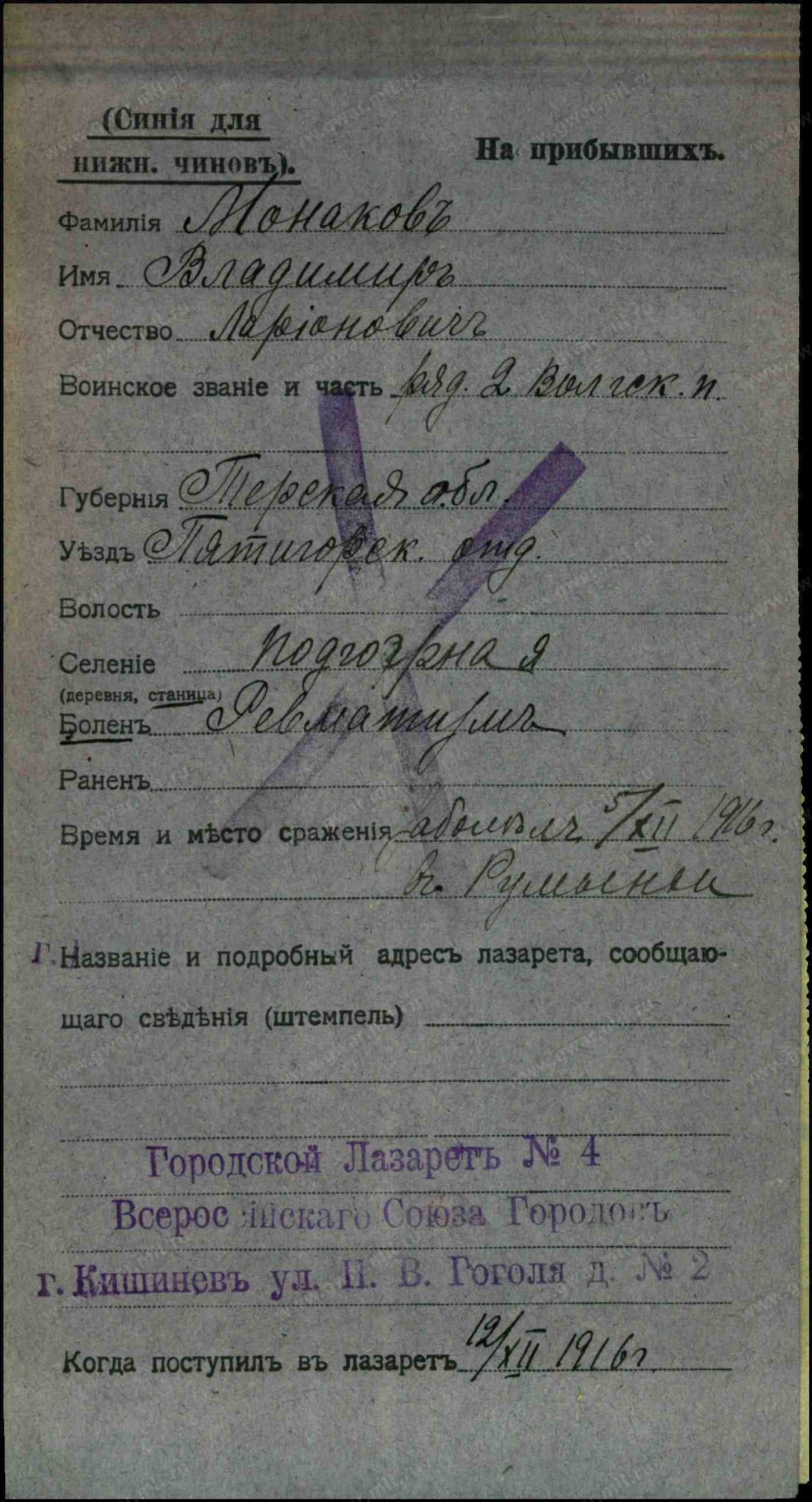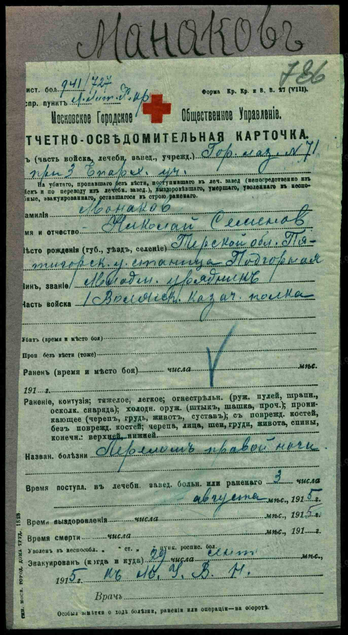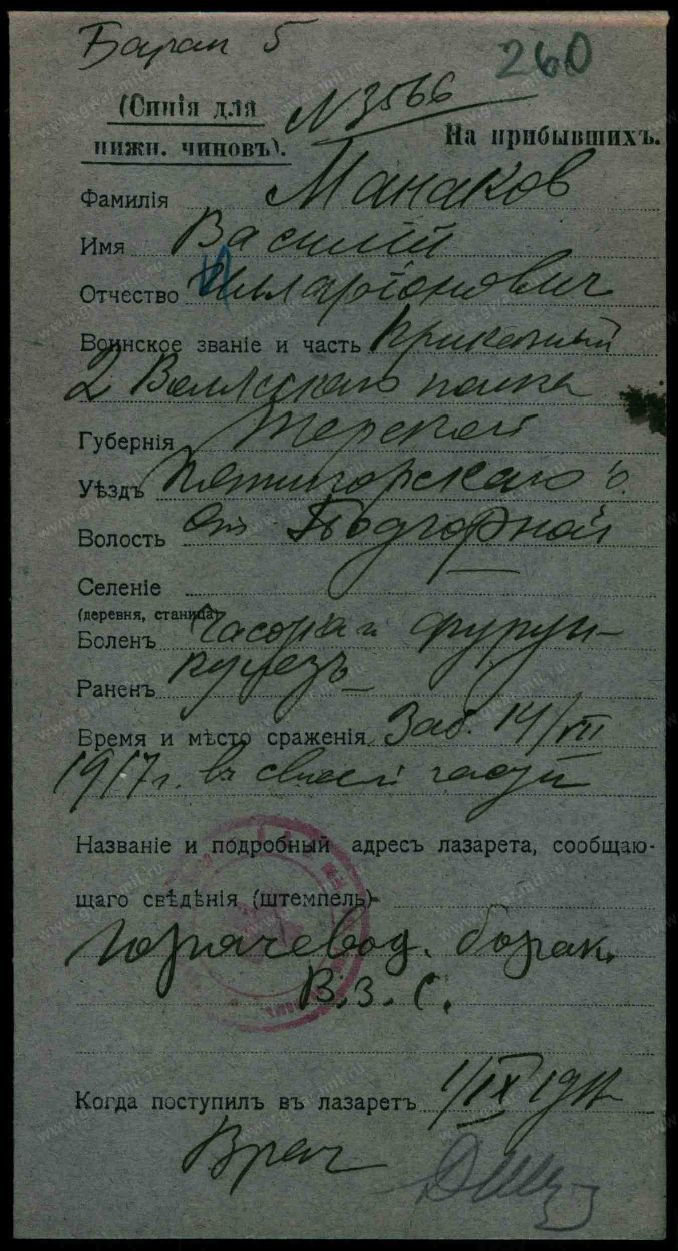 Мл. сержант __.__.1914 Ставропольский край, Александрийско-Обиленский р-н, ст. Подгорная. Сводная картотека