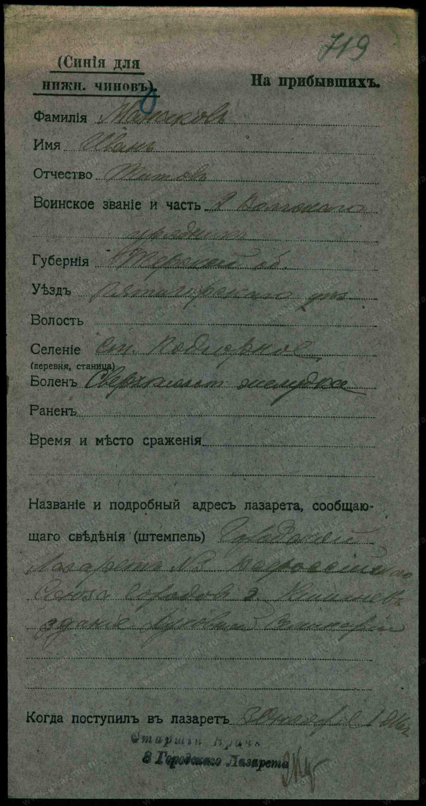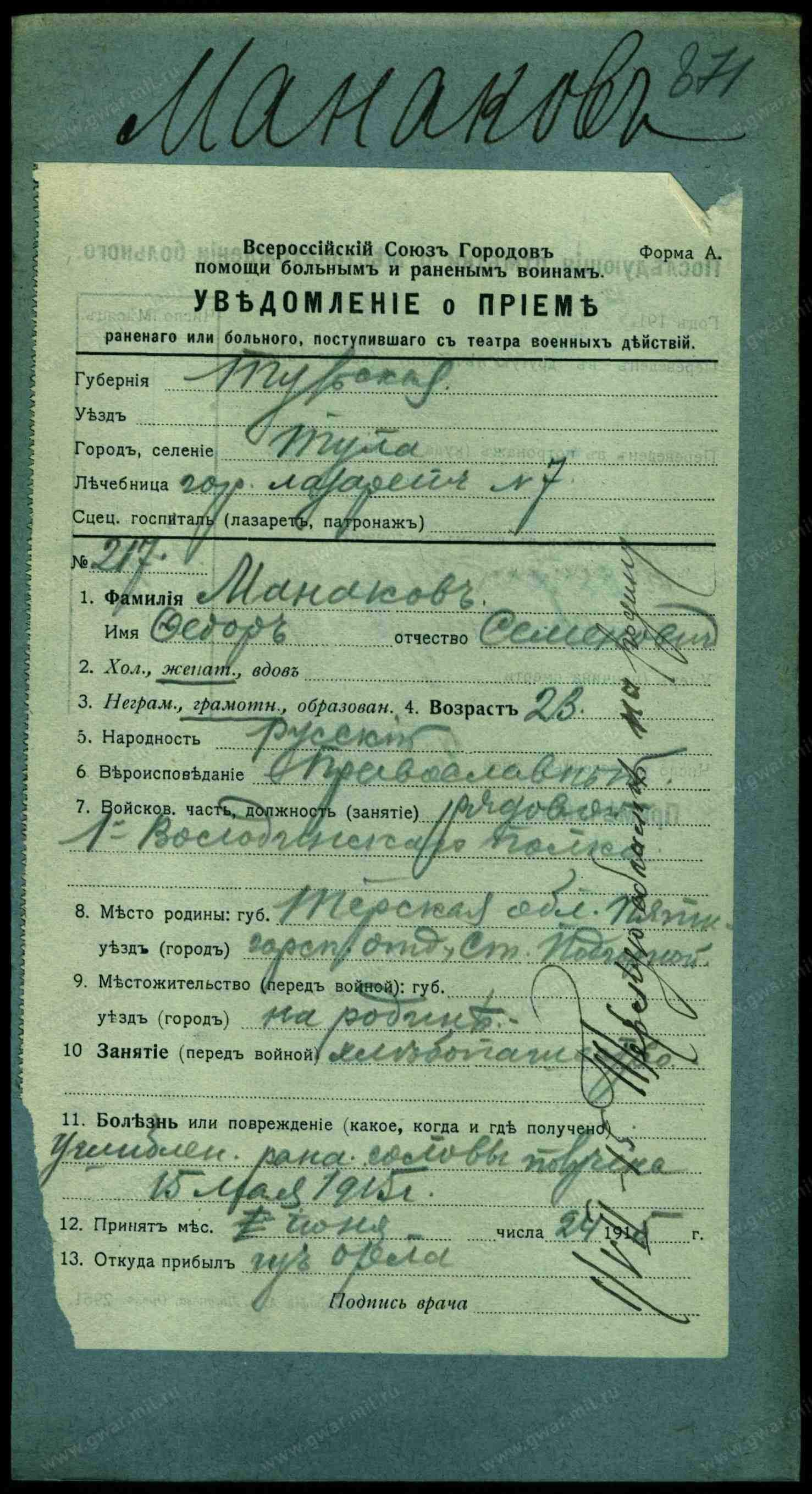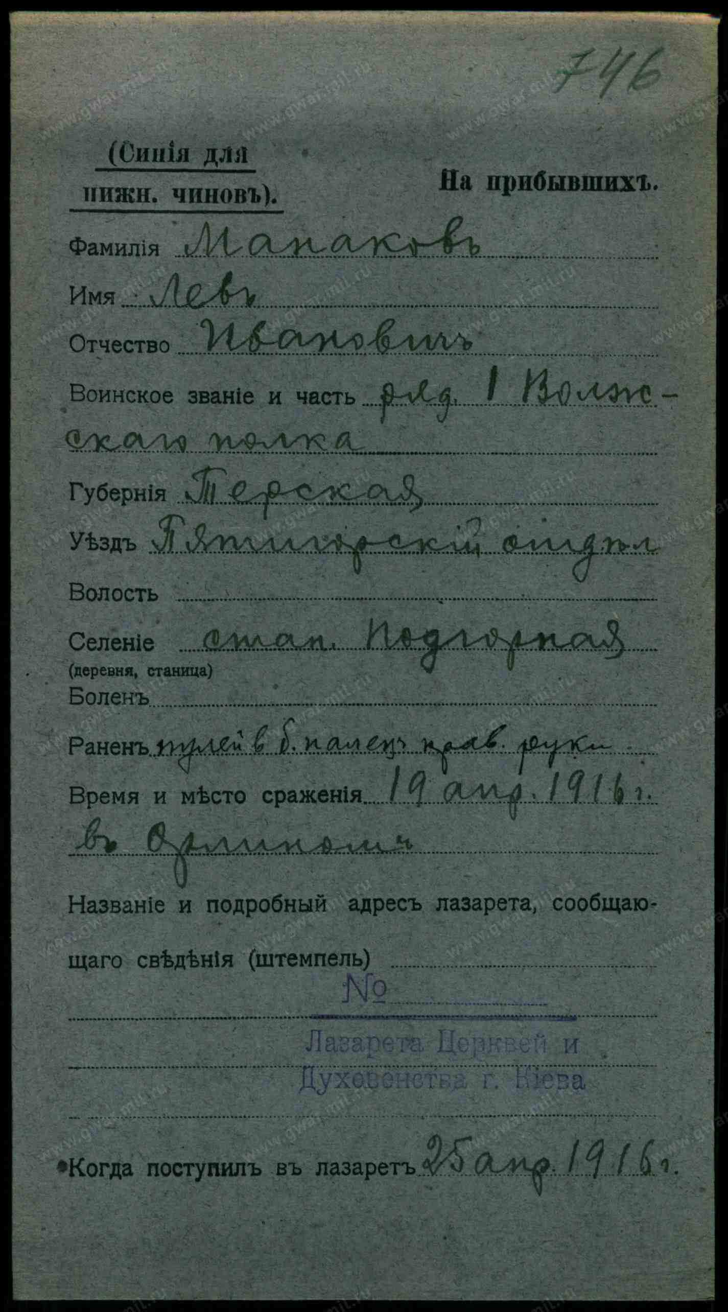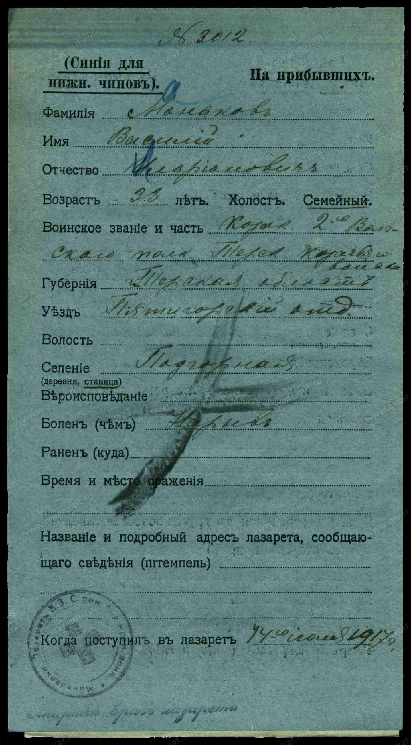 Мл. сержант __.__.1914 Ставропольский край, Александрийско-Обиленский р-н, ст. Подгорная. Сводная картотека