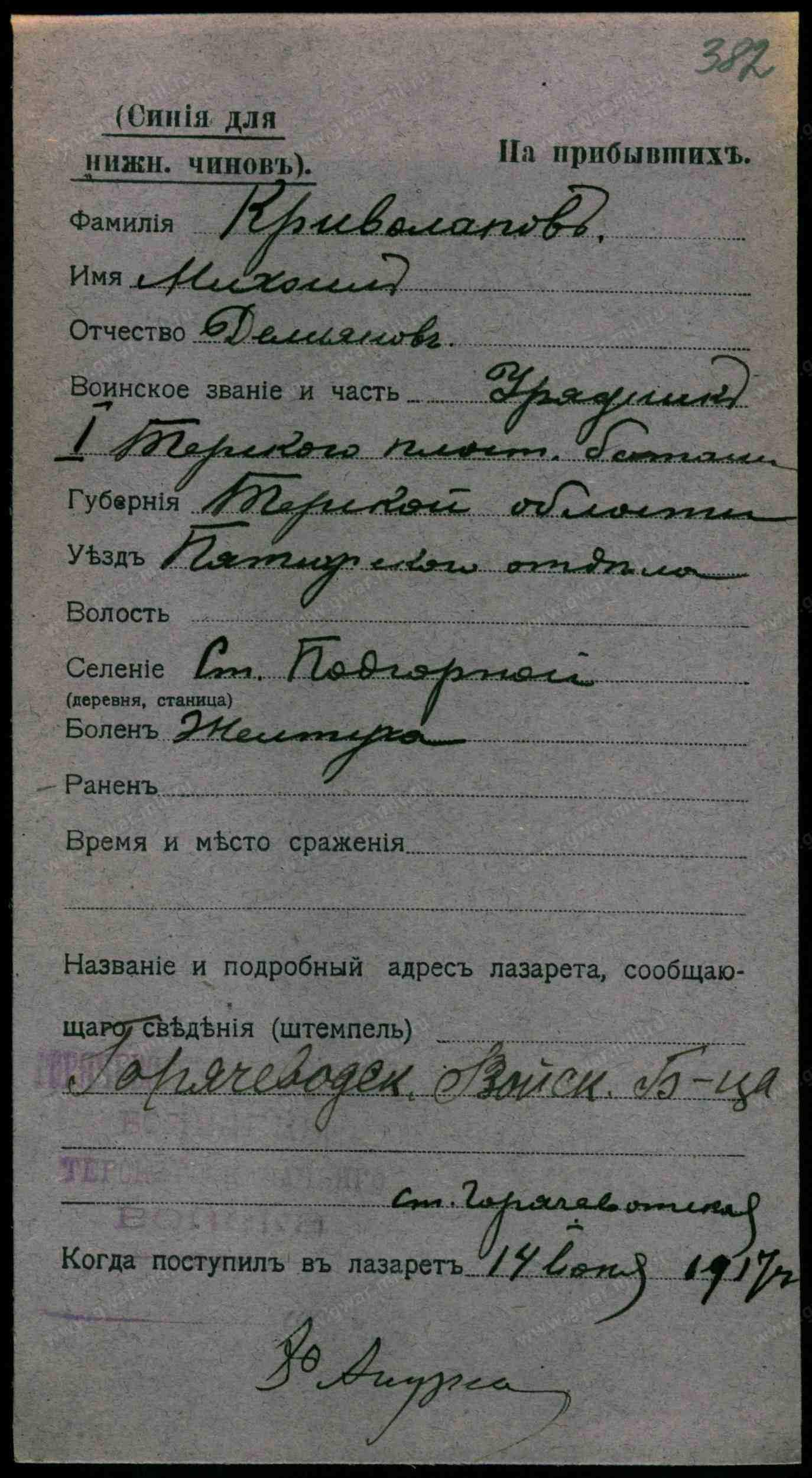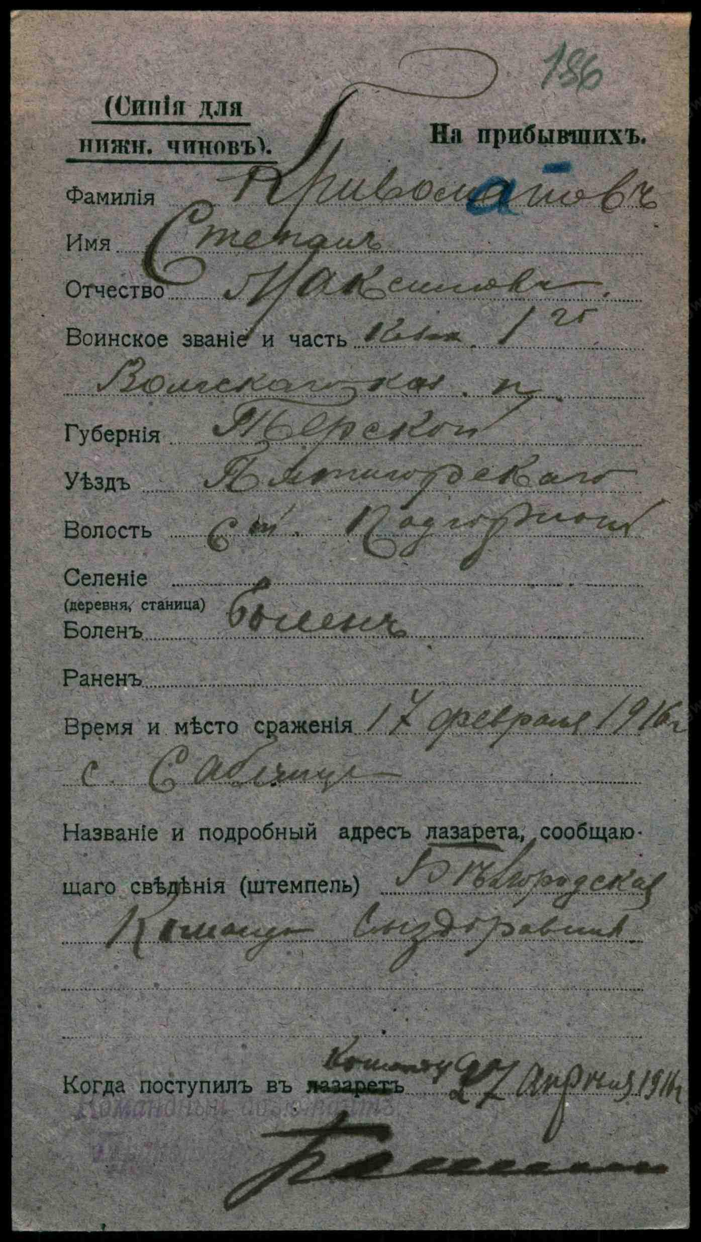 __.__.1914 Ставропольский край, Георгиевский р-н, ст. Подгорная. Юбилейная картотека
