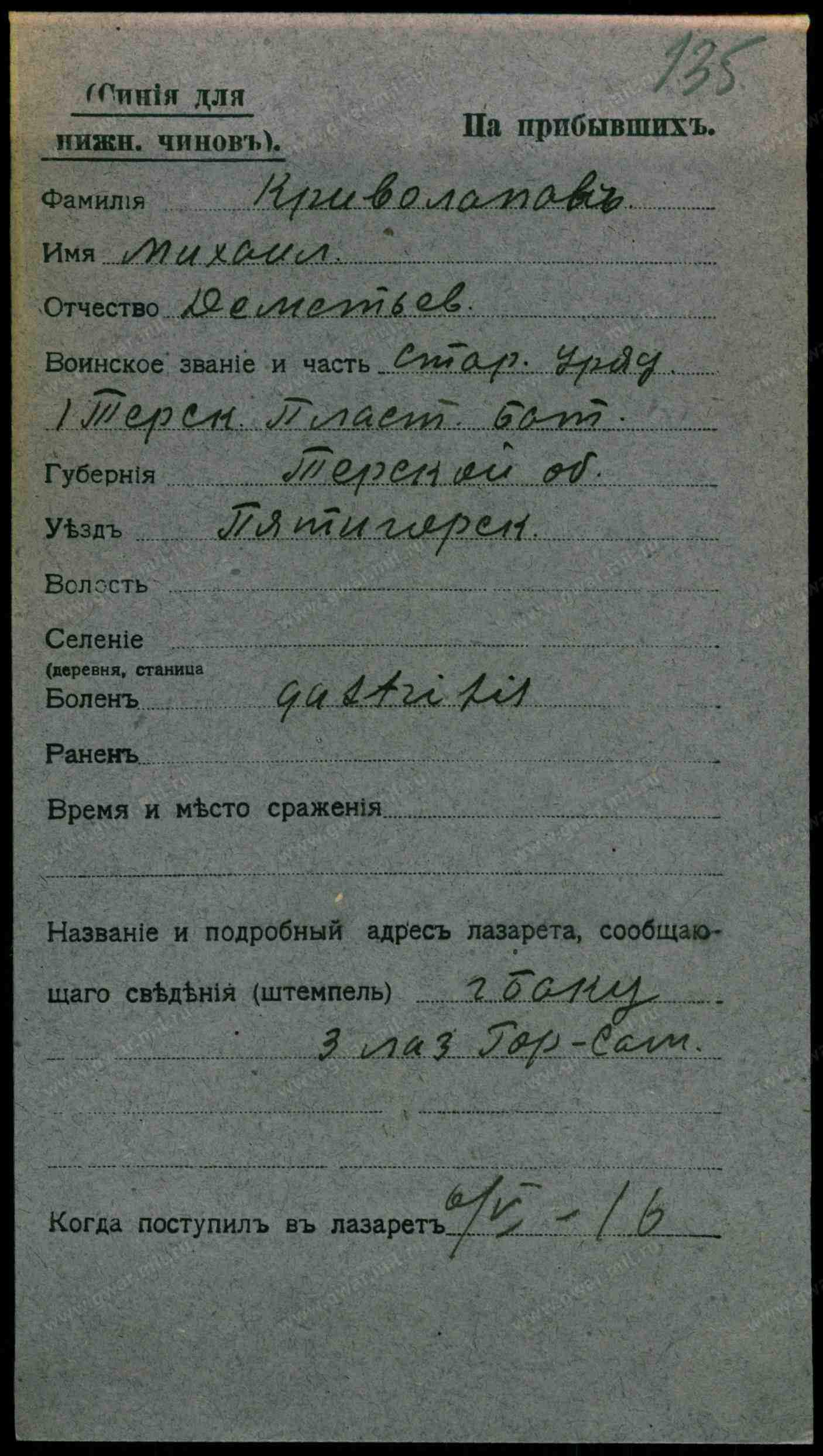 Красноармеец, __.__.1913 Орджоникидзевский край, Александрийско-Обиленский р-н, ст. Подгорная, Место службы: АВЛ 470 37 А 3 УкрФ,365 оатб 37 А