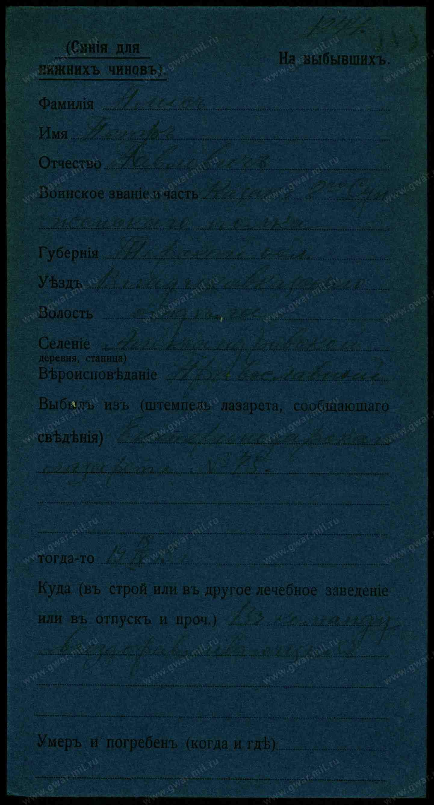 Тип документа Карточка на выбывших (нижние чины)