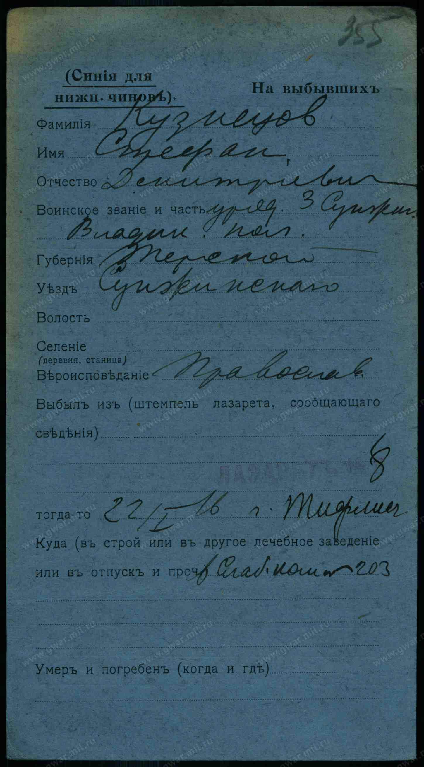 Тип документа Карточка на выбывших (нижние чины)