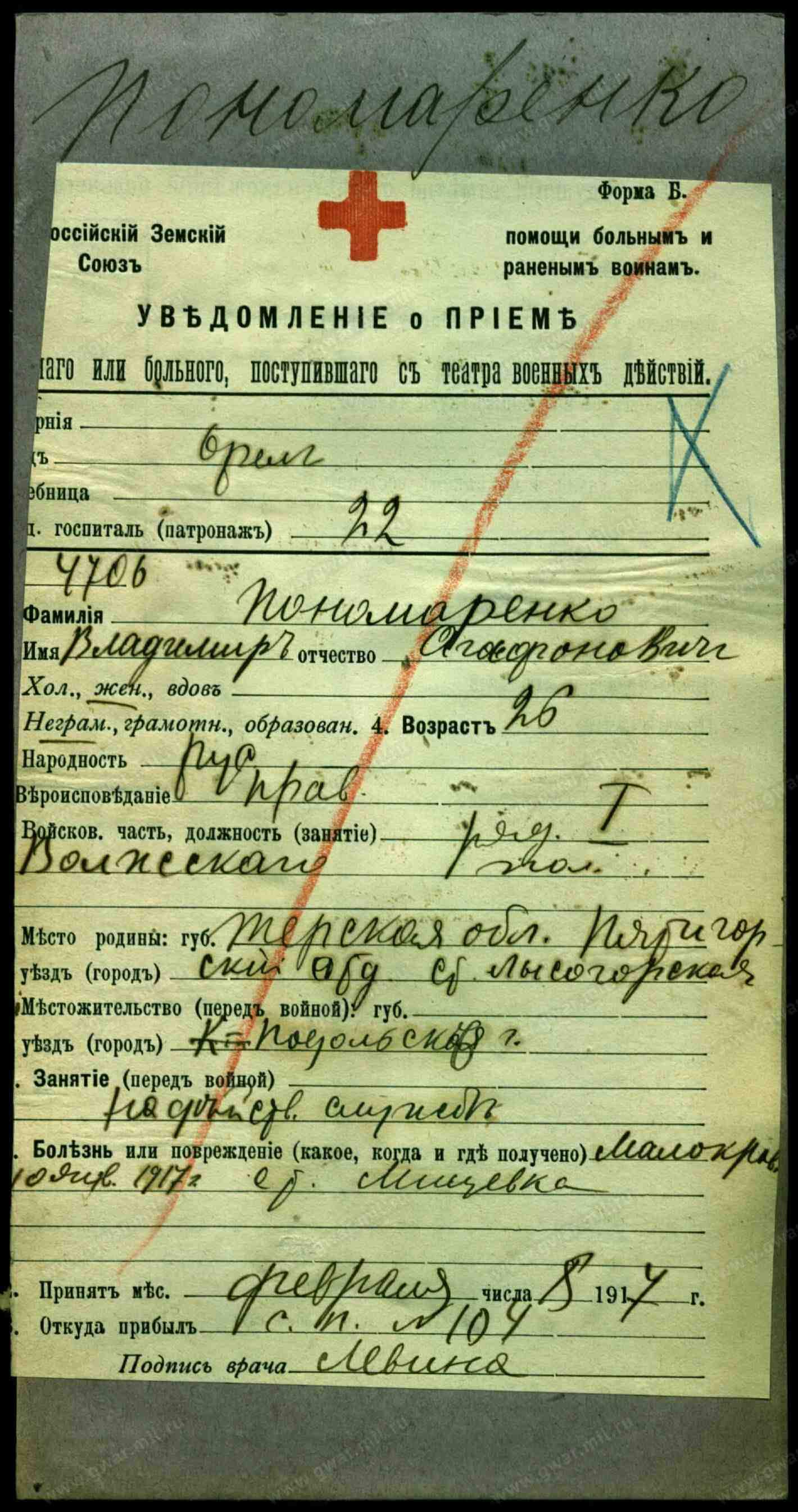 Фонд Картотека бюро учета потерь в Первой мировой войне (офицеров и солдат)