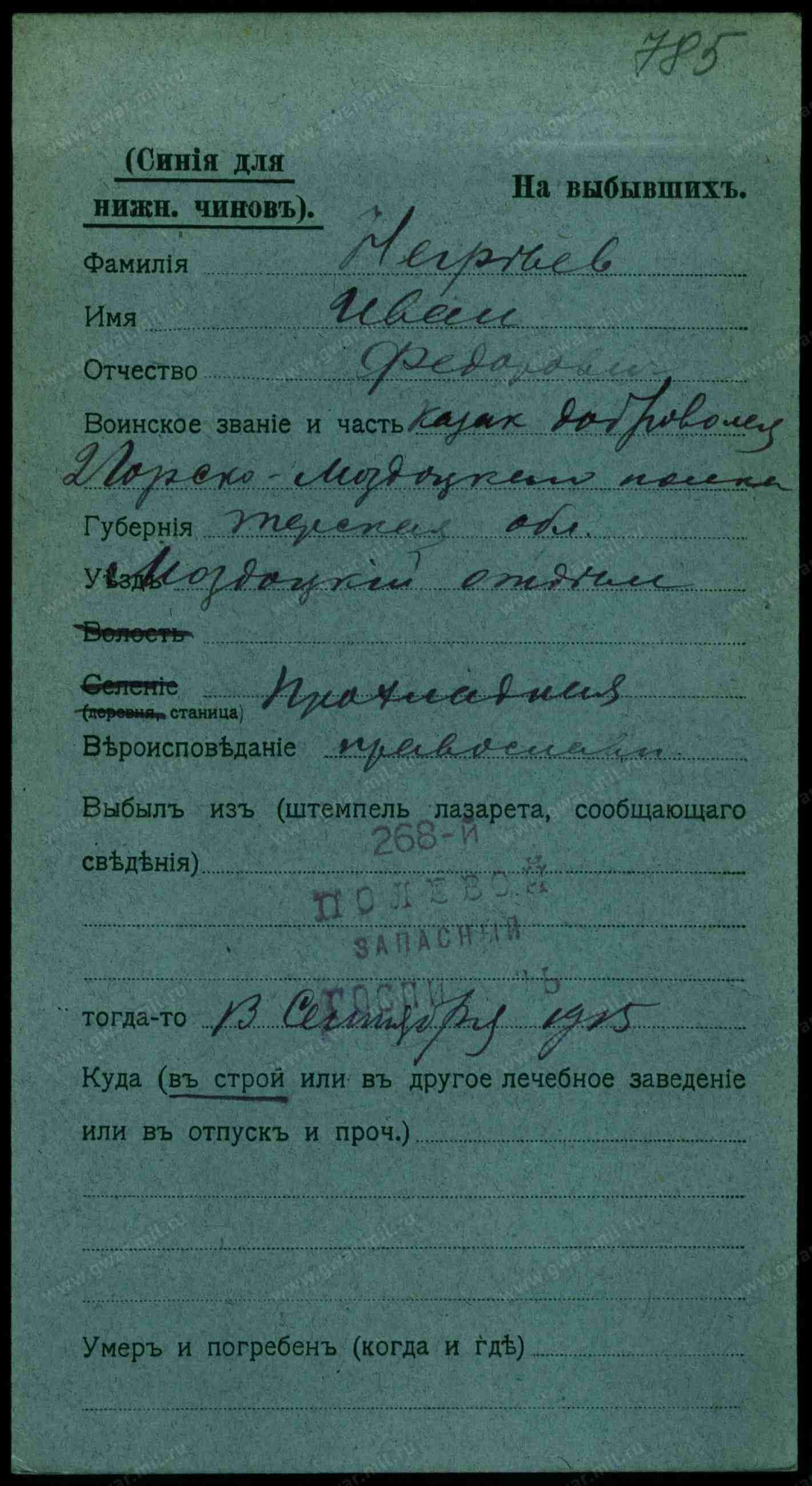Тип документа Карточка на выбывших (нижние чины)