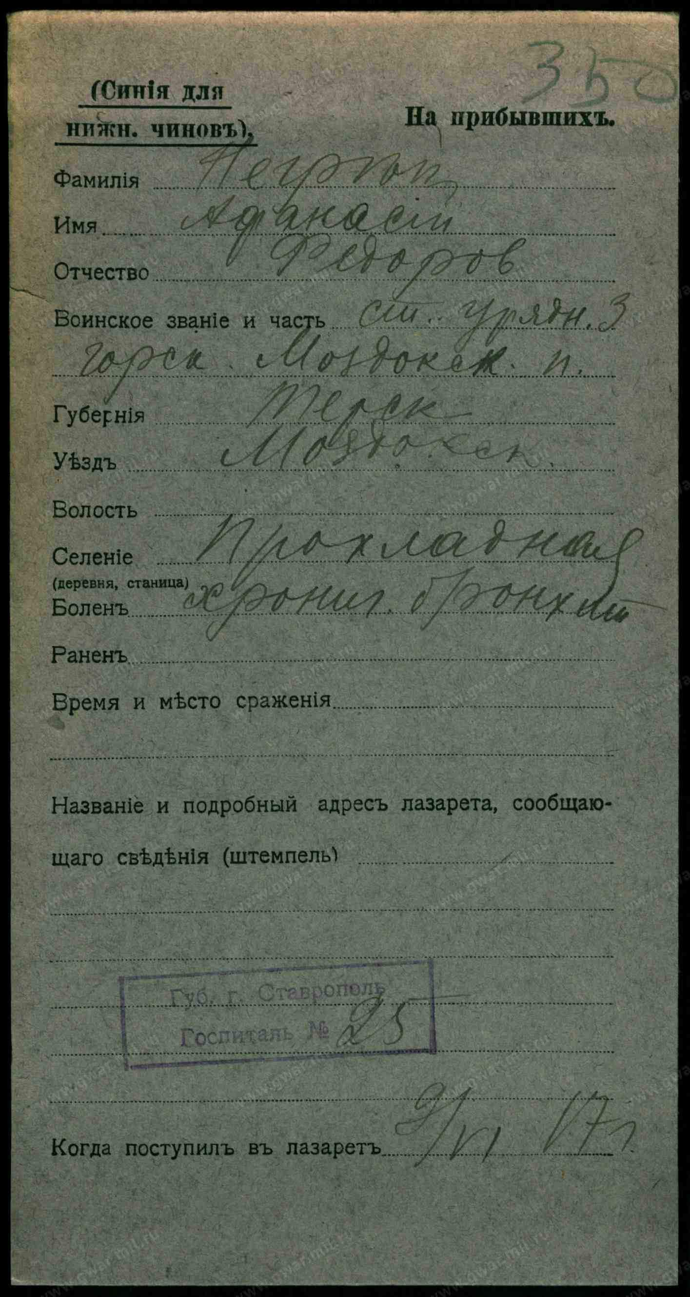 Негрей Григорий Карпов Терская обл. Прохладная ст. ПС урядников 1879