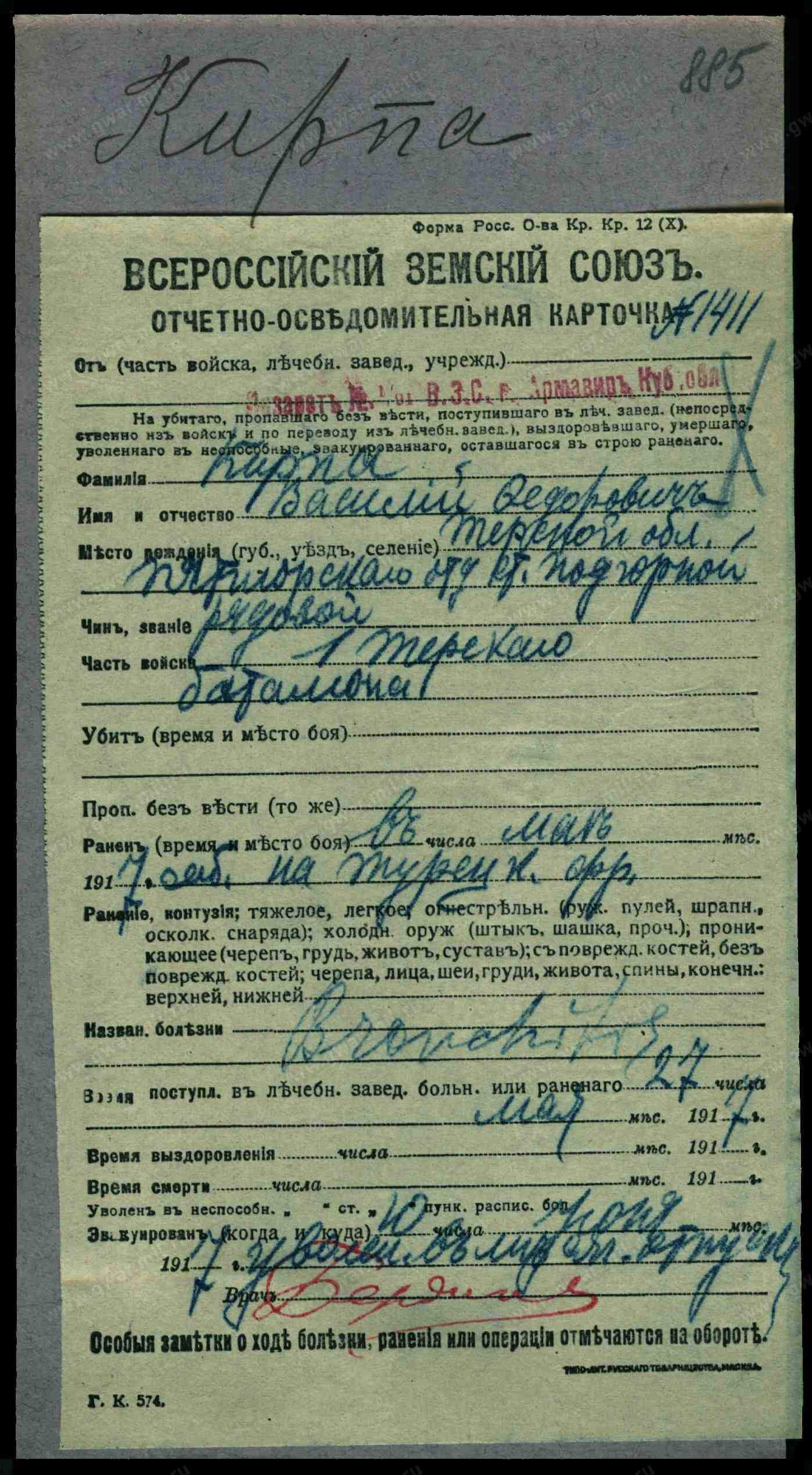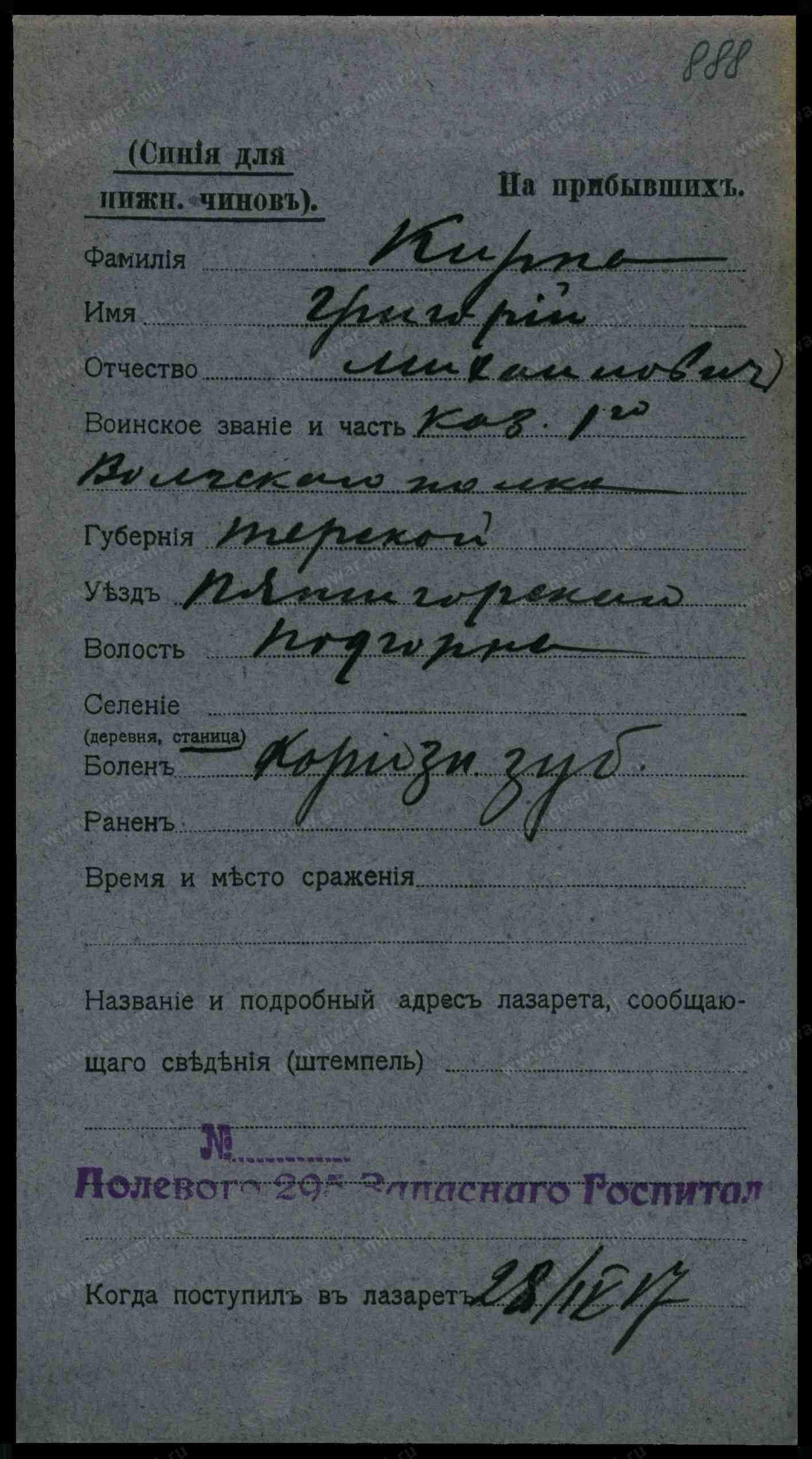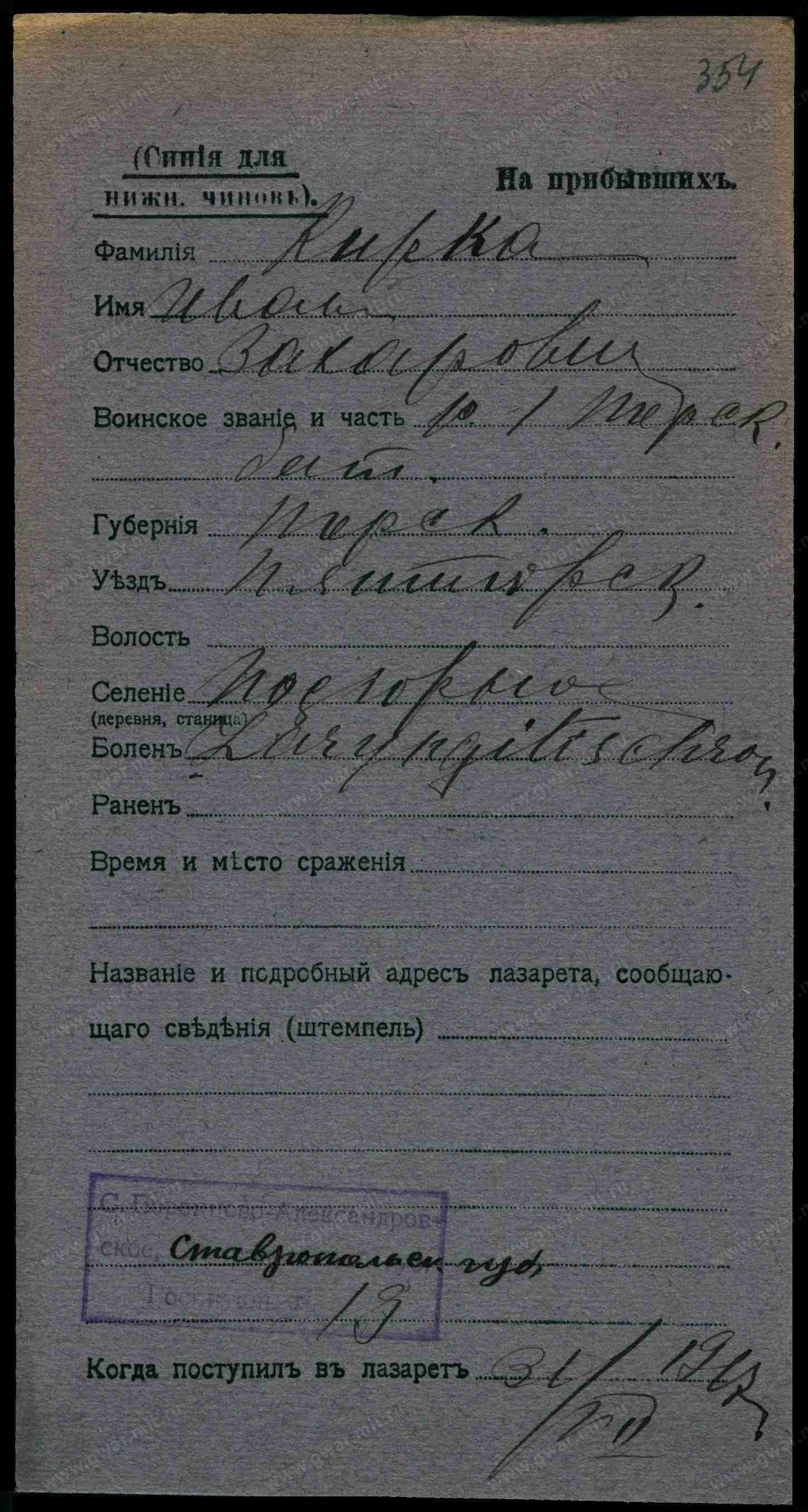 __.__.1912 Ставропольский край, Георгиевский р-н, с. Подгорное, Место службы: 833 сп 3 див.