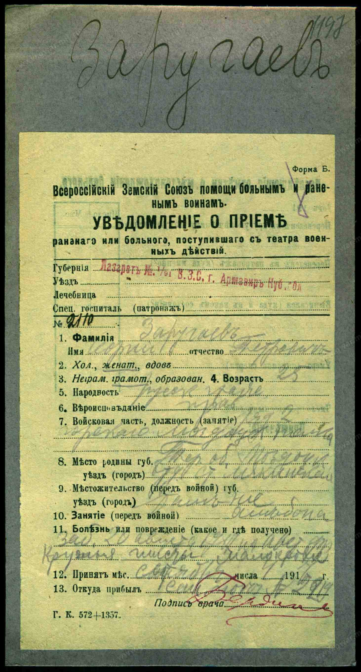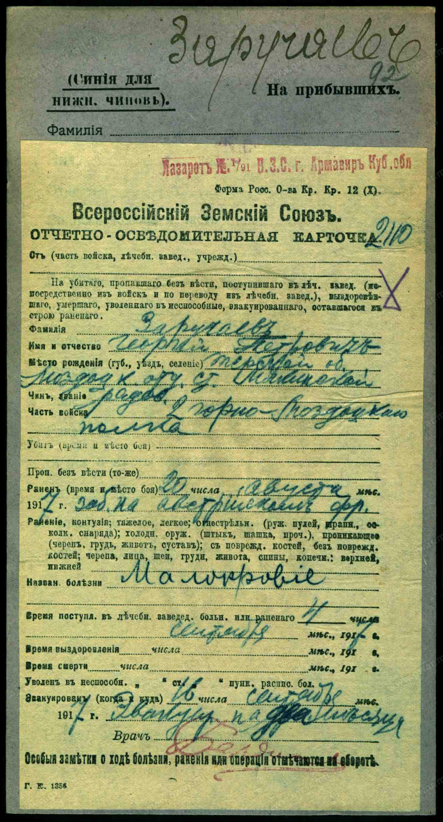 Фонд Картотека бюро учета потерь в Первой мировой войне (офицеров и солдат)