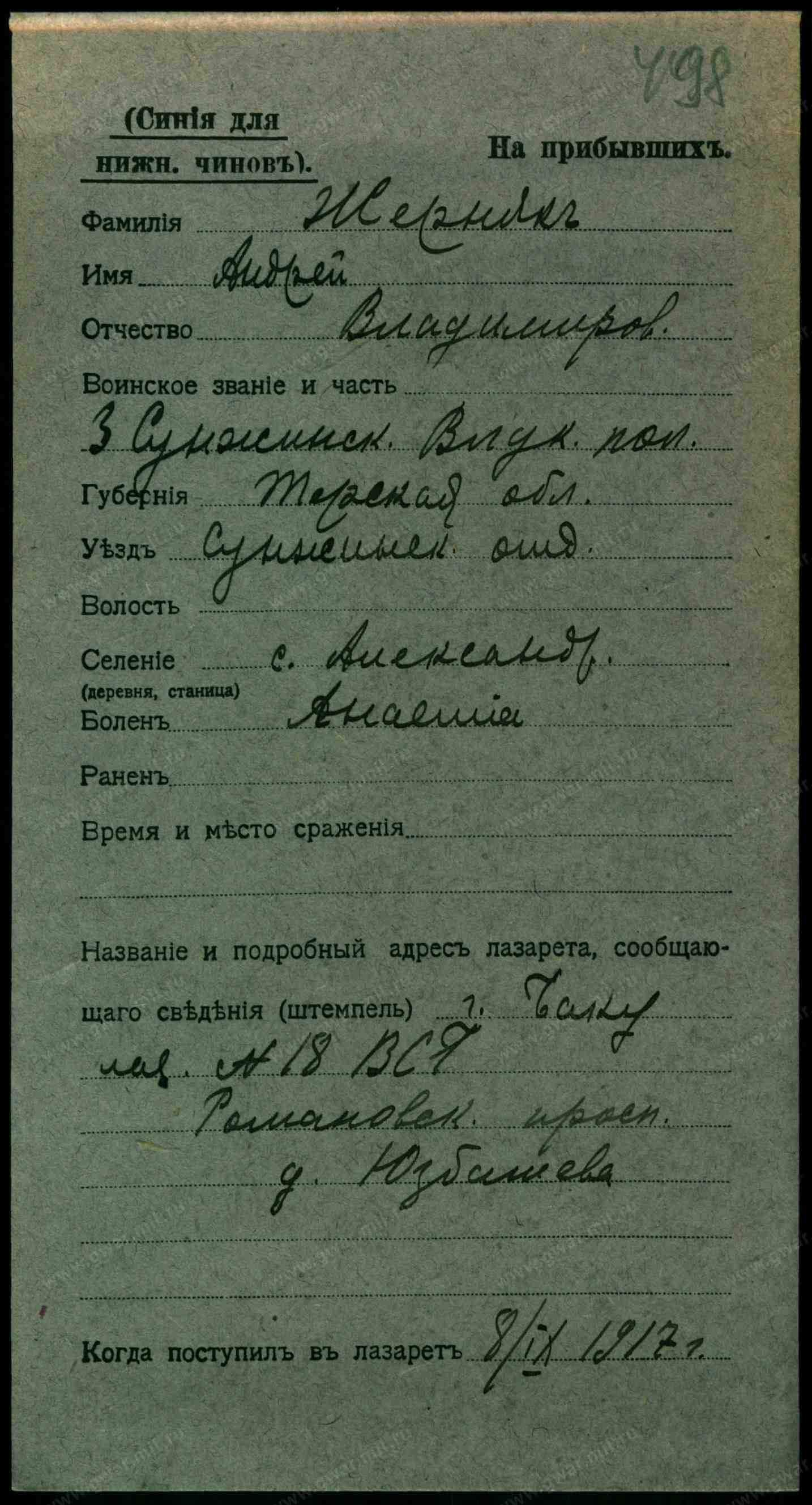 Фонд Картотека бюро учета потерь в Первой мировой войне (офицеров и солдат)