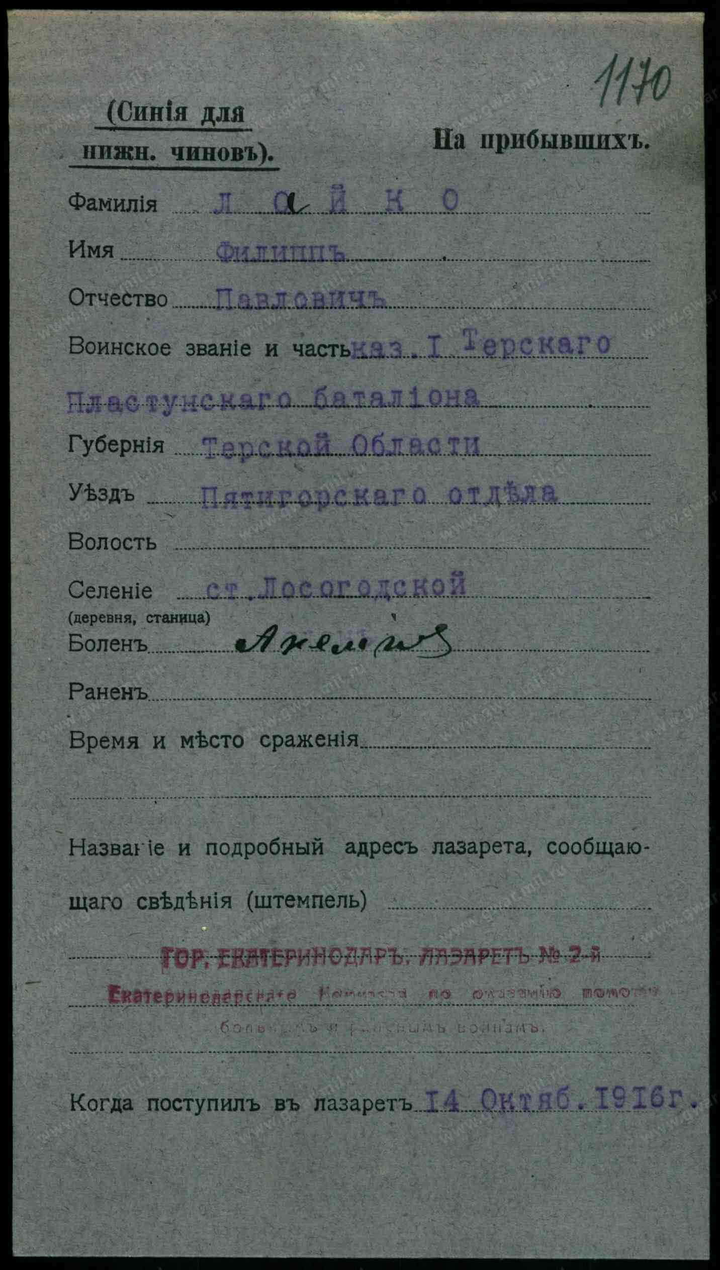 Красноармеец|рядовой, 25.12.1914 Орджоникидзевский край, Лысогорская. Пленение