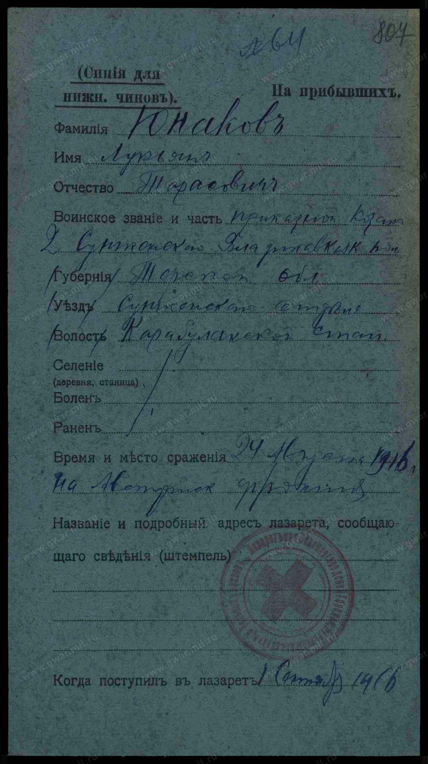 Дата выбытия 24.08.1916