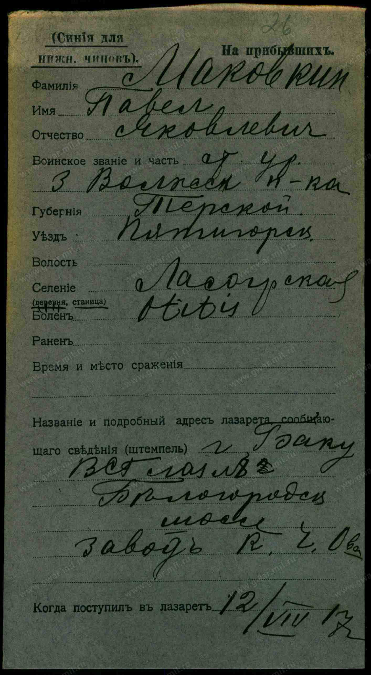 Фонд Картотека бюро учета потерь в Первой мировой войне (офицеров и солдат)