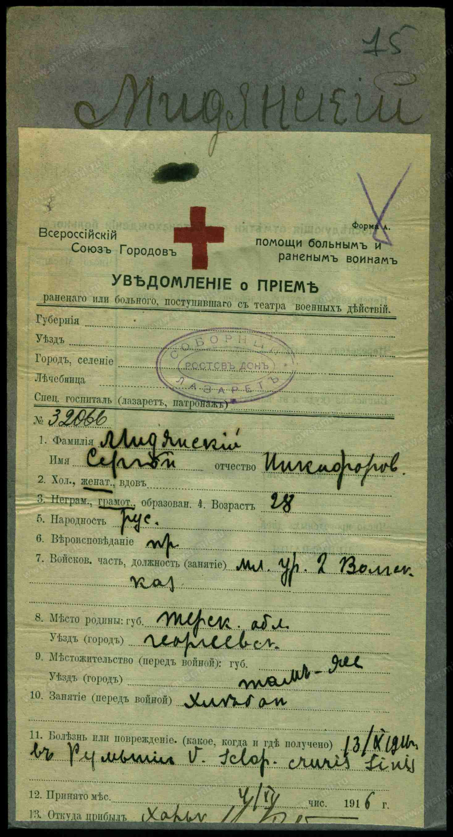 Дата выбытия 13.10.1916