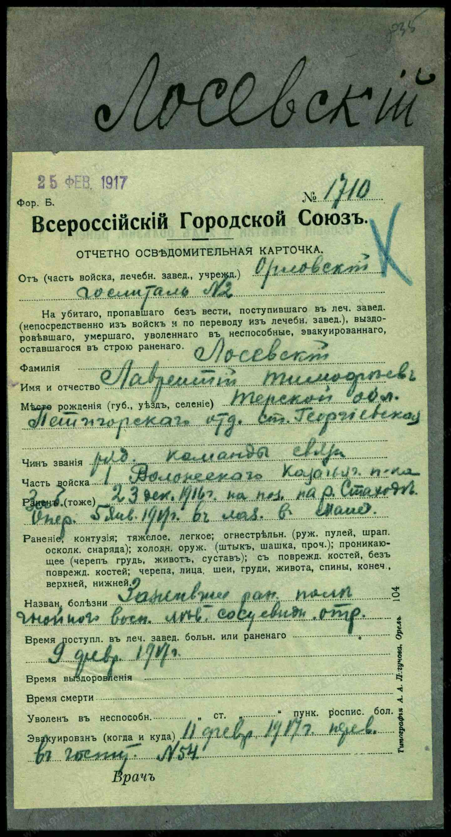 Фонд Картотека бюро учета потерь в Первой мировой войне (офицеров и солдат)