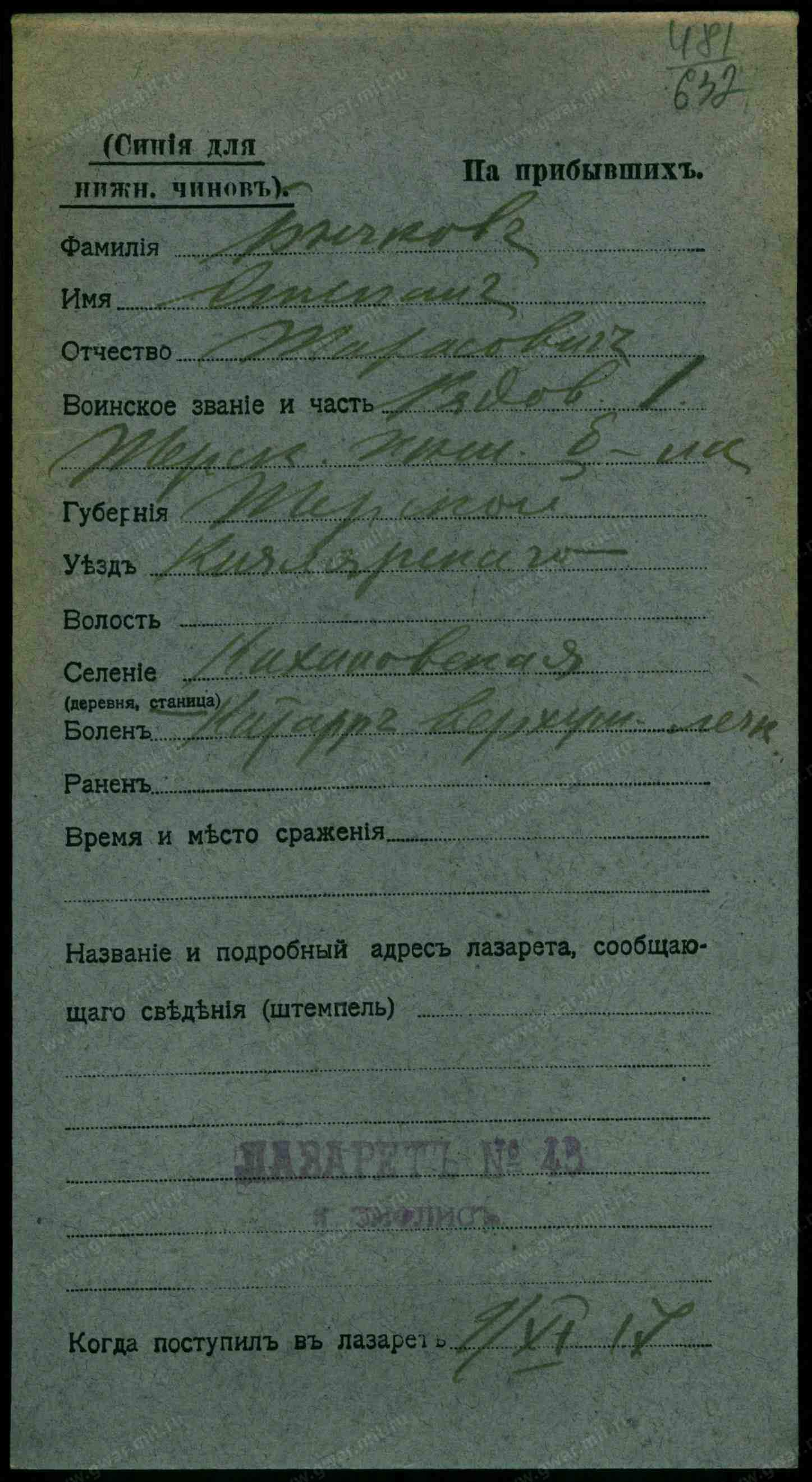 6. Бычков Алексей Сергеев, сын, 10 мес., казак, родился здесь, правосл., при родителях.