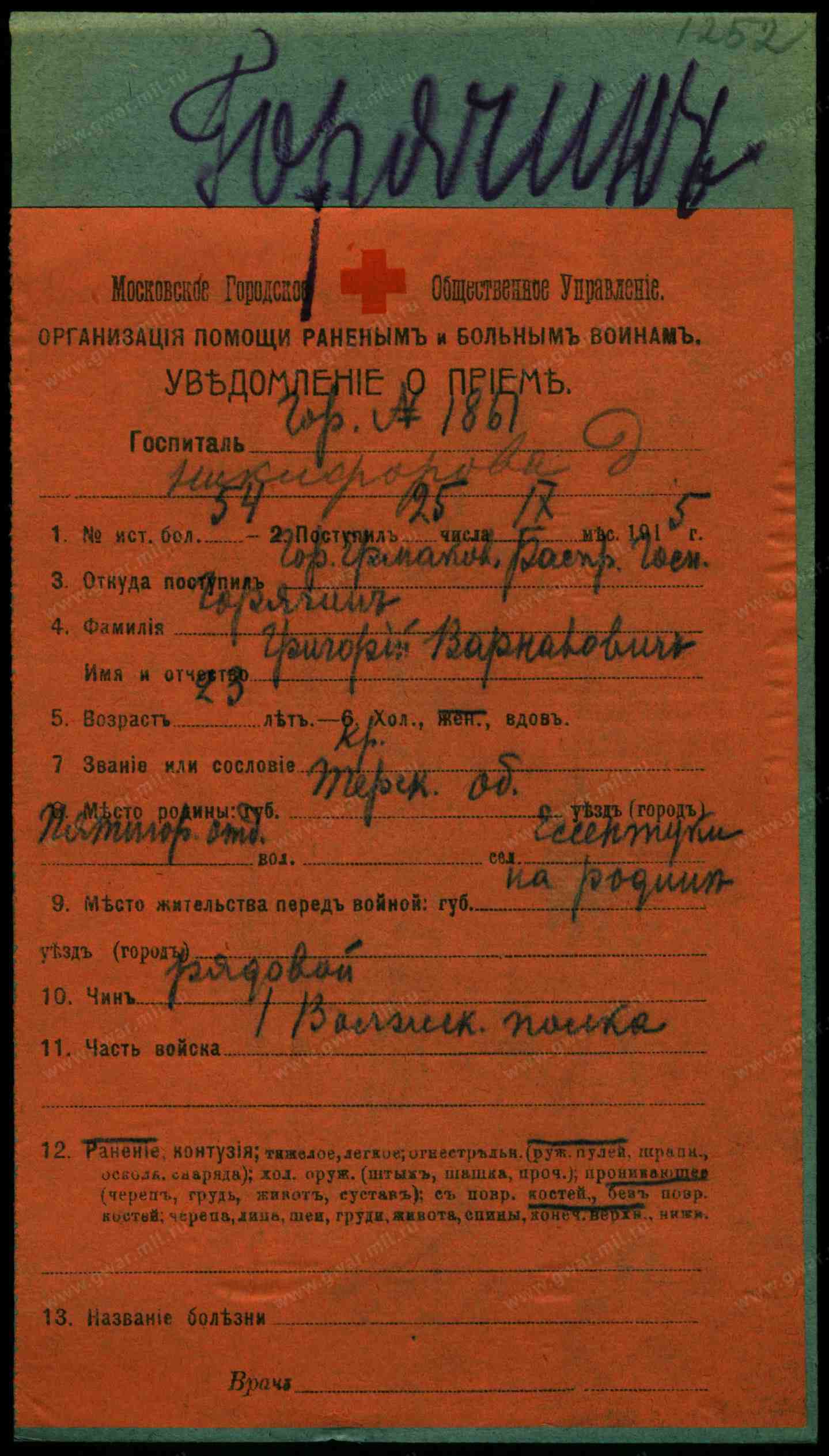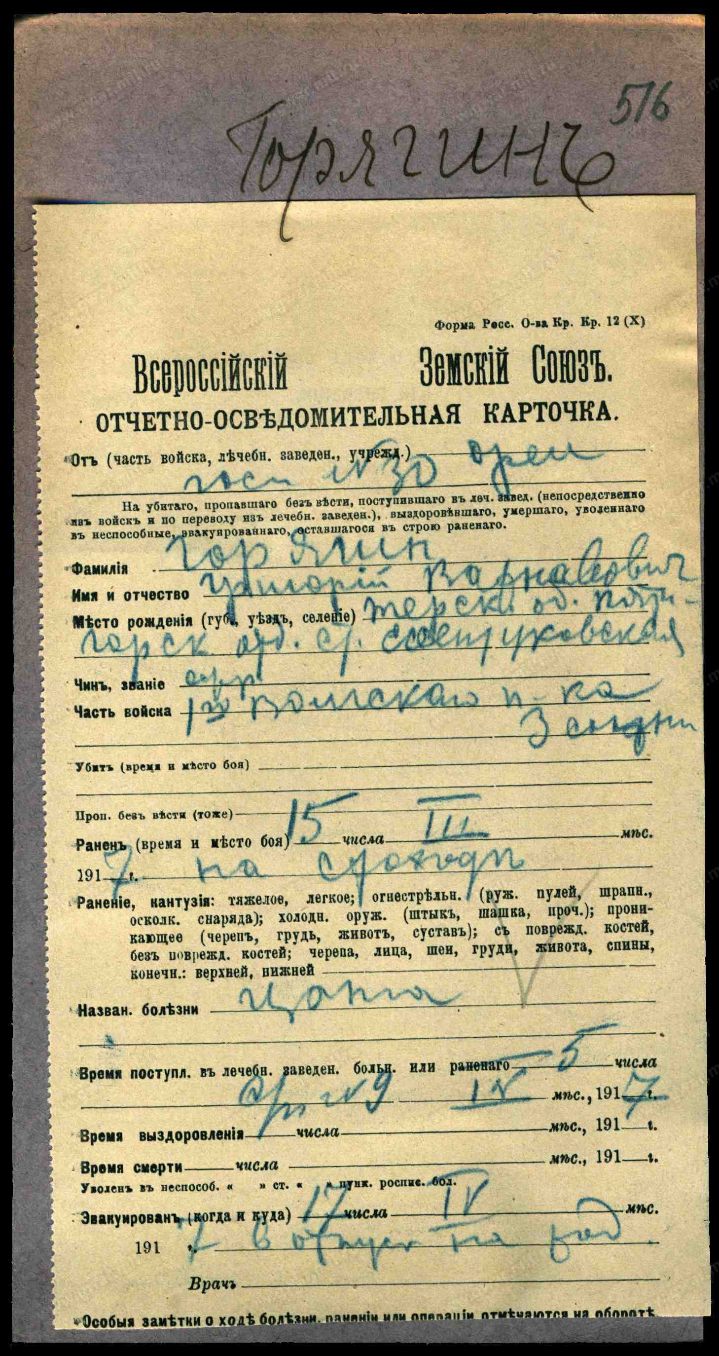 Место рождения. Губерния Терская обл.